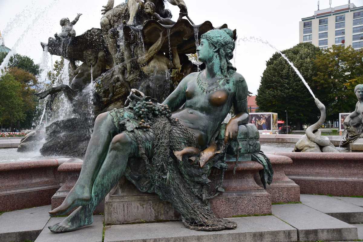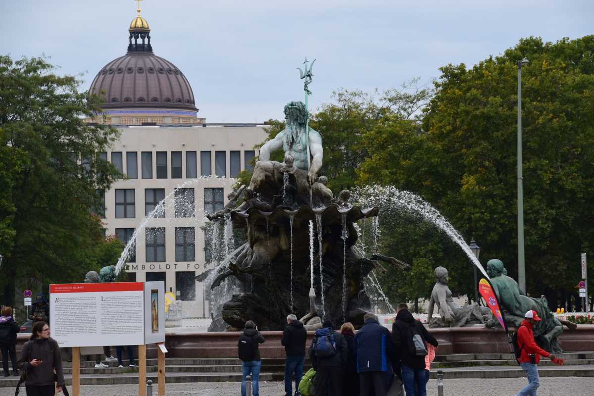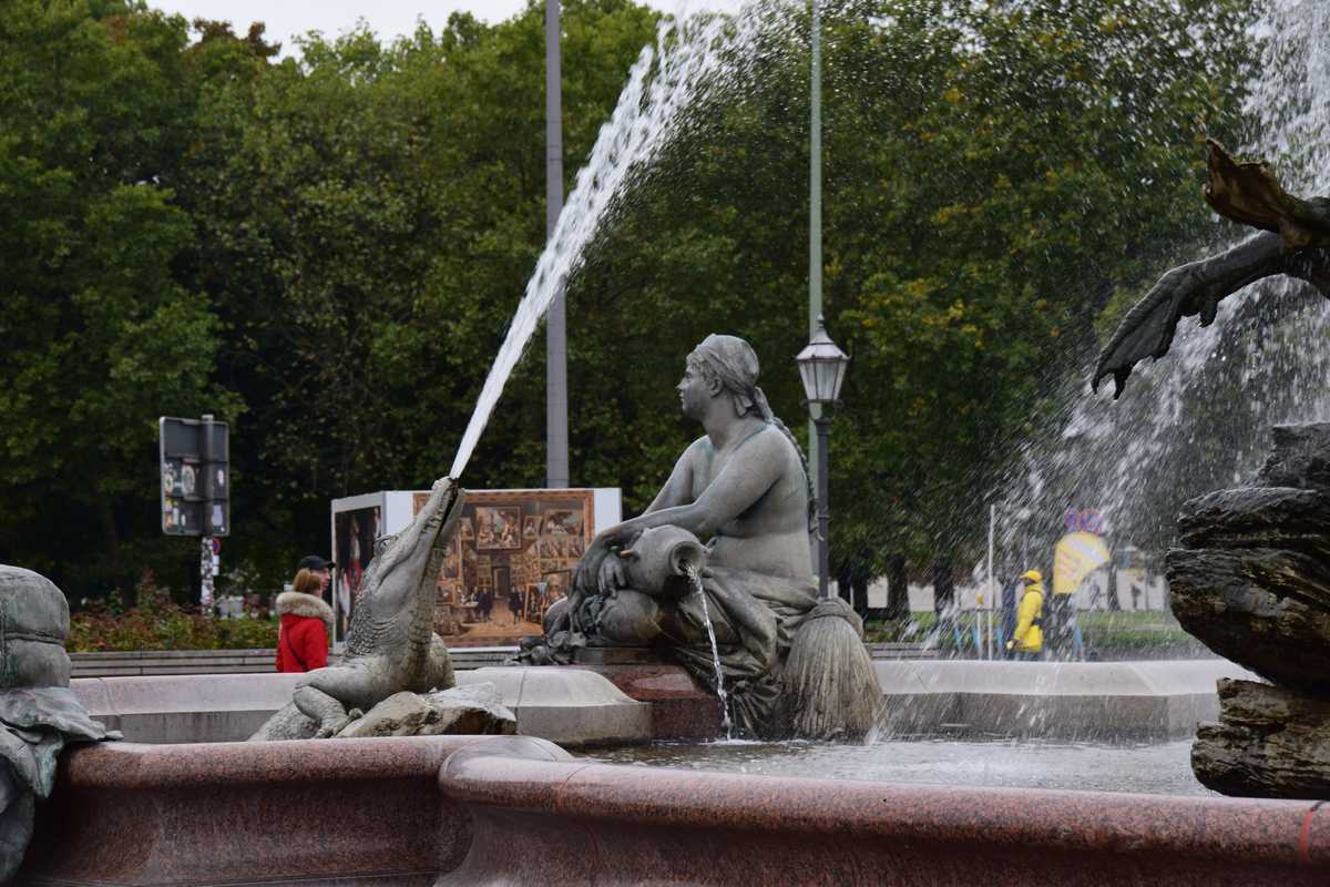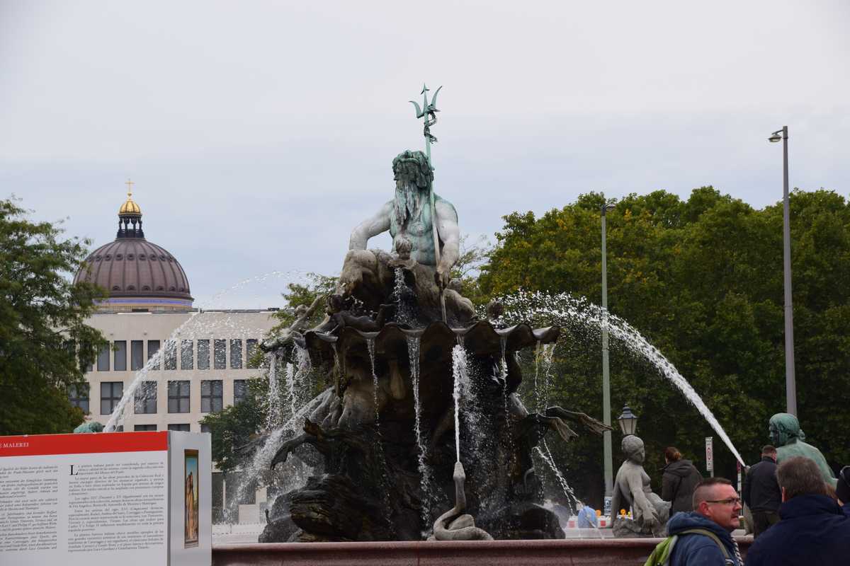 3eme jour à Berlin. Ce matin le temps est couvert. Nous repartons direction Berlin-Gesundbrunnen pour prendre le métro. Nous commencont à mieux maitriser le système de ticket. Direction Alexanderplatz. Nous faisons le tour d'Alexanderplatz, avec toujours la tour de la télèvision qui domine la place de ses 368 m, un peu plus loin nous pouvons admirer la splendide FONTAINE DE NEPTUNE fontaine représentant le dieu romain de la mer, Neptune, et 4 femmes symbolisant les principaux fleuves de Prusse. Juste en face le ROTES RATHAUS est l'hôtel de ville de Berlin, siège du bourgmestre-gouverneur et de son « gouvernement », le Sénat de Berlin tout en briques rouges. Nous reprenons le bus HOP-ON HOP-OFF nous nous trompons de sens donc nous voilà reparti à refaire le tour comme la veille. Descente de la KARL MARX ALLEE, passage par la STRAUSBERGER PLATZ nous voilà de retour à l'EAST SIDE GALLERY on en profite pour aller jusqu'au pont traversant la Sprée L’OBERBAUMBRUCKE. On reprend nôtre bus tour de BERLIN direction la KUDAM nous passons devant la LA PORTE DE L'ELEPHANTS l'entrée du ZOO on descend la Kurfürstendamm qui bien changée beaucoup de boutiques de luxe pour arriver à la Kaiser-Wilhelm-Gedächtnis-Kirche l'église cassée là rien n'a changé l'EUROPA CENTER est toujours mais devant il y a une grande fontaine et sur la place plein de stand de vente de bière, saucisses en tout genre, un petit tour à l'intérieur de l'EUROPA où je découvre en plein centre une horloge à eau qui n'existait pas. Nous reprenons notre bus direction Alexanderplatz