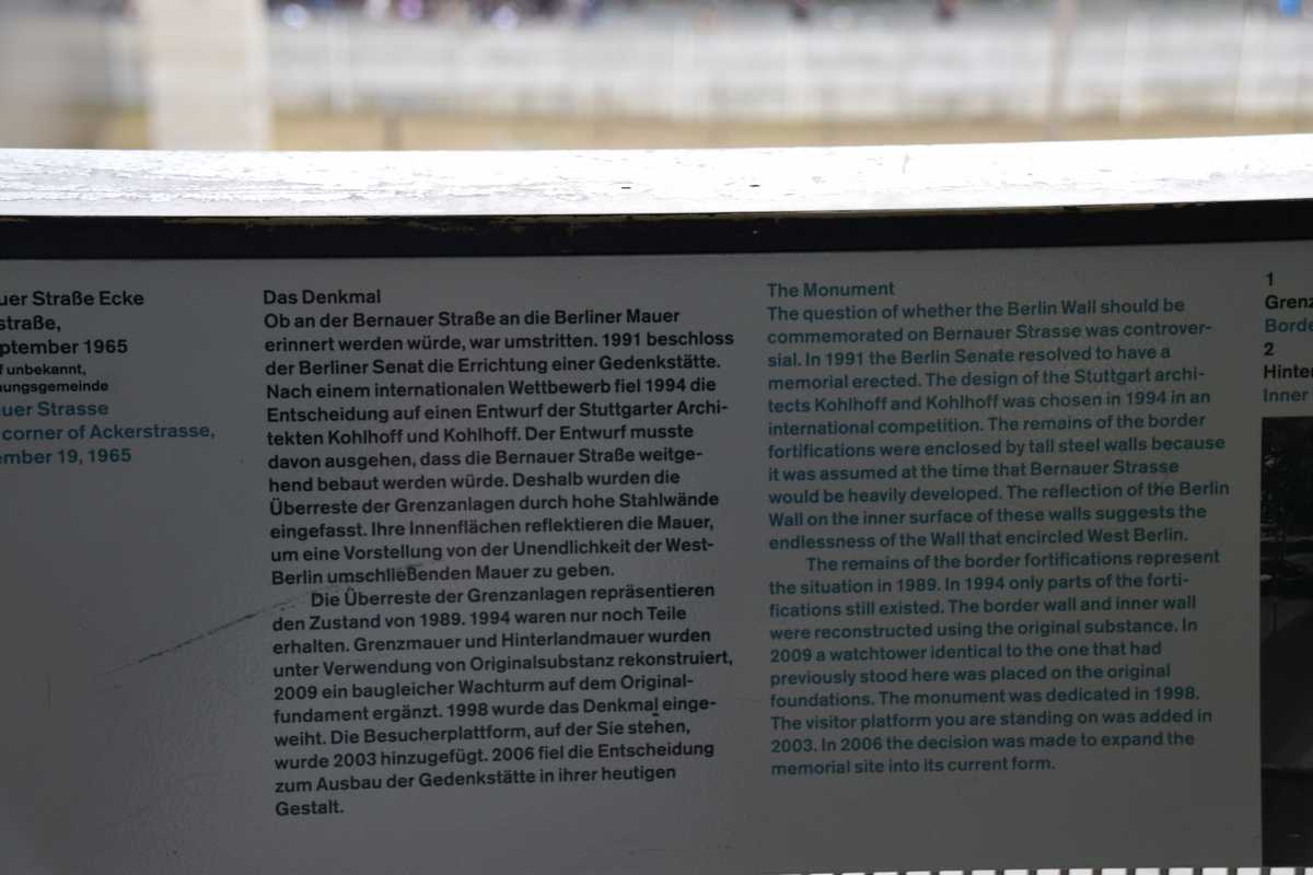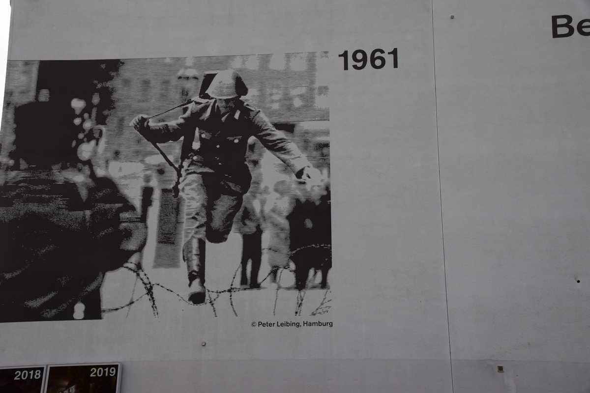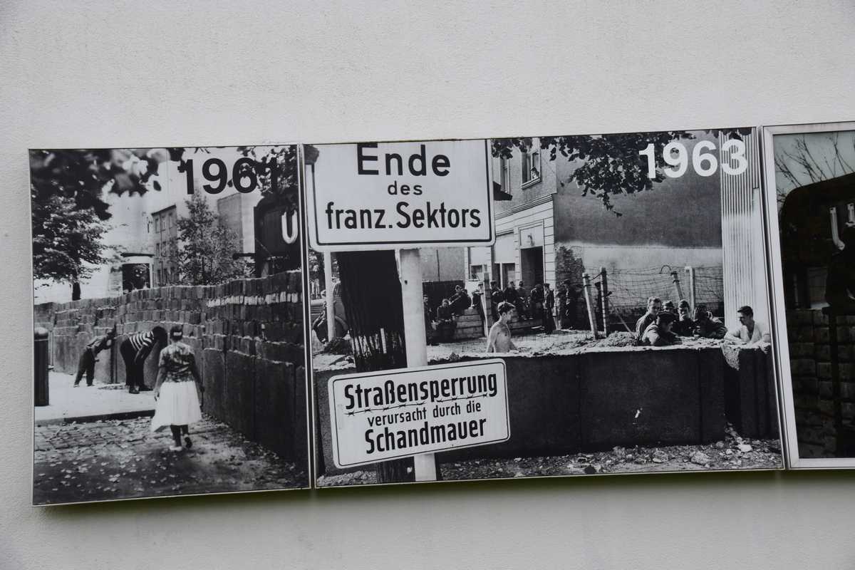 Dimanche dernier jour à BERLIN ce matin nous n'allons pas loin deux stations de métro direction Bernauer Straße sur les traces des vestiges du Mur, un endroit que je connaissait bien situé dans le secteur français. Sortie du métro je découvre une belle avenue moderne il faut remonter sur une centaine de métres pour découvrir les premiers vestiges du mur sur les facades des maisons s'affichent d'immense photos qui rappelent les événements majeurs de cette époque. Sur l'emplacement de l'ancien mur côté ouest de grandes barres en fer scellées dans le sol rappelle le tracé. Dans la pelouse également une ligne de pavée matérialise l'un des plus gros tunnel creusé por s'évader le TUNNEL 57 en avencant encore on trouve l’endroit où l’église de la réconciliationVERSOHNUNGSKIRCHE fût détruite, à sa place la Chapelle de la réconciliationKAPELLE DER VERSOHNUNG est érigée. Nous arrivons sur la partie où le mur à été conservé dans son intégralité avec son mirador, celà donne une petite idée de ce qu'était la réalité de cette frontière. Juste en face se tient le Gedenkstätte Berliner Mauer mémorial du mur de Berlin où de nombreuses photos et vidéo rappelle les sombres heures du passés. Nous repartons pour la deuxième partie de notre visite direction KURT-SHULACHER PLATZ afin de revoir le lieu où j'ai passé quelques année LE QUARTIER NAPOLEON en sortant du métro j'ai un peu de mal à me repèrer la place a pas mal changée mais finalement nous arrivons devant les grilles de la caserne aujourd'hui JULIUS-LEBER-KASERNE