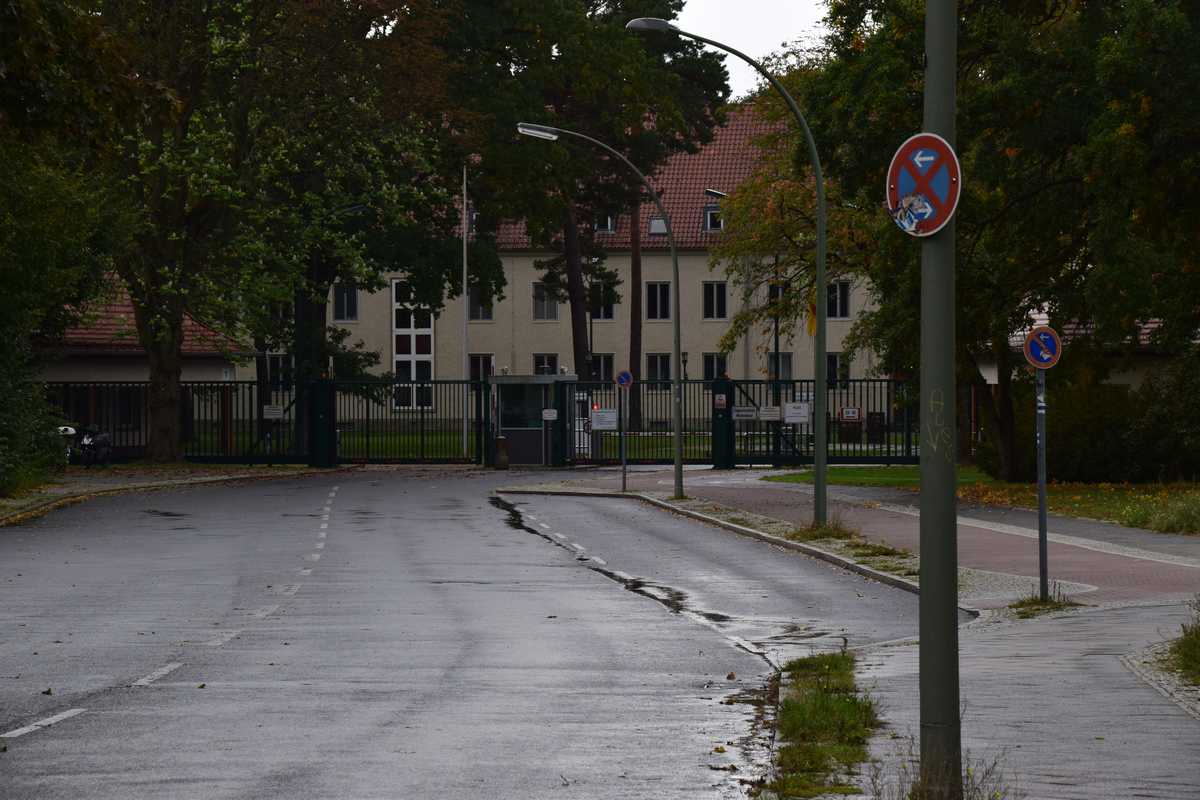 Une sentinelle derrière une vitre nous reçoit nous nous présentons on lui demande si on peut regarder un peu l'intèrieur de la caserne et là la seule réponse que nous obtenons c'est un "NIET" il nous fait comprendre que nous ne sommes pas les bienvenus et qu'il faut partir imméditement. Devant le peu de compréhention de cette personne nous revenons en arrière mais là encore on nous fait signe de partir, nous n'insistons et c'est sous une pluie battante que nous repartons vers la place où pour nous consoler de cette visite un peu ratée nous nous offrons un bon CURRYWURST et une bonne vieille SCHULTHEISS. Retour au camping-car ou nous commençons à ranger départ demain matin.