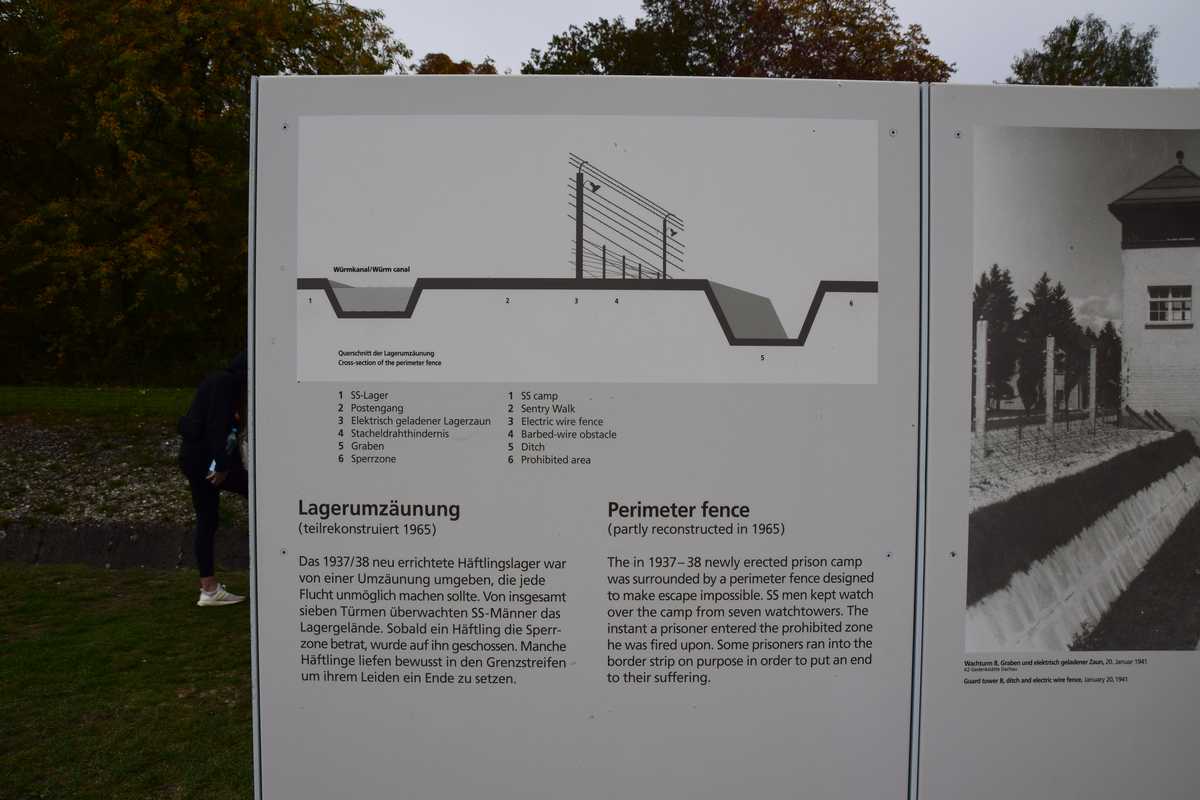 Aujourd'hui nous avons programmé une visite historique, nous allons visiter le camp de Dachau. Le camp de concentration de Dachau est le premier camp de concentration mis en place par le régime nazi. Il est créé sur le site d'une ancienne fabrique de munitions à Dachau, à 17 km au nord-ouest de Munich. A l'entrée un grand parking payant vous accueille, on peut stationner en toute sécurité. La visite du camp libre. Dés l'entrée on passe la porte en fer forgé du Jourhaus portant l’inscription « Arbeit macht frei ». La visite permet de découvrir la cruauté des nazis pendant la guerre, les conditions ignobles de détention des prisonniers, jusqu'à atteindre le summum de l'horreur lors de la visite de la section des fours crématoires et salles d'extermination. Les anciens baraquements ont été rasés mais une partie à été reconstitué, celà permet de juger les conditions dégradantes dans lesquelles les prisonniers étaient détenus. Aprés plus de deux de visites, nous repartons profondément marqué par devant le degré que peut atteindre la cruauté humaine.