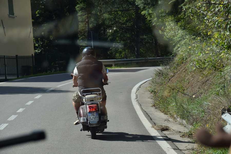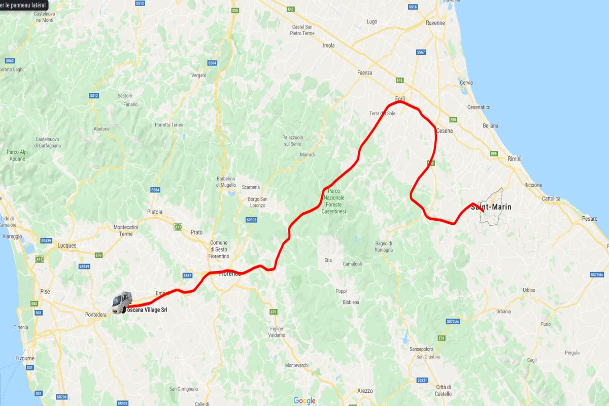 Nous quittons San Marin non sans avoir fait le plein 10cts de moins qu'en Italie, mais les machines refusent les cartes bleus et n'acceptent que les billets, en apparence à San Marin il faut payer cash partout. Nous repssons en Italie direction Pise il nous faut traverser les monts Apennins d'est en ouest pour rejoindre la côte Méditerranéenne. D'entée le GPS nous entraine sur des petites routes de montagne pas très large ni en bon état et comme c'est dimanche il y a des cyclistes partout,il faut redoubler le prudence, par contre les paysages sont magnifiques. Nous finissons par rejoindre une grande route mais nous avons fait un petit détour. Direction Cesena puis Forli et on se dirige vers Florence. Nous attaquons de nouveau la montagne et nous sommes doublé par d'innombrables motards, nous comprendrons pourquoi un peu plus tard. Nous arrivons à une cinquantaine de km de Fleurance au col du Passo del Muraglione et là il y a un restaurant et un rassemblement énorme de motards. La traversée de Fleurance se passe pas trop mal et nous arrivons à Montopoli où nous avons décidés de faire étape au Toscana Camping. Pas de chance c'est la fête au village il nous faut le traverser mais tout est barré jusqu'à 21h. Nous appelons le camping qui nous indique une autre route et finalement après avoir pas mal tourné nous arrivons. Très bon accueil en francais mais le camping est en terrasse l'accés étroit et pentu, tant bien que mal on arrive à s'installer, c'est rustique mais correct, par contre à éviter pour gros camping car où avec remorque.