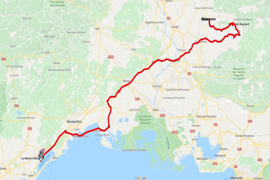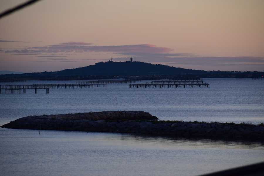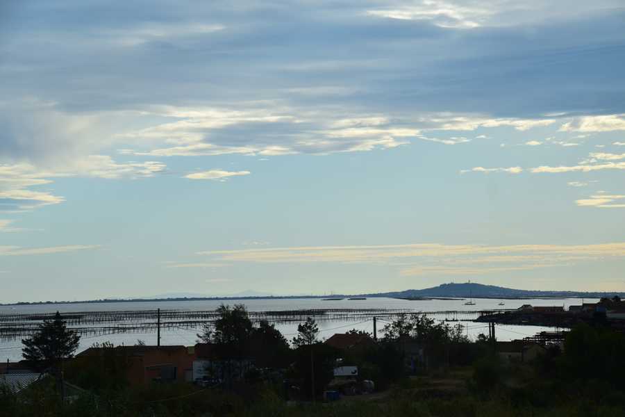 Départ de Malaucéne sous un superbe soleil, on en profite pour faire le détour jusqu'au Chalet Reynard sur les pentes du Mont Ventoux. Nous traversons le village de Bédoin nom évoquateur pour les amateurs du tour de France, puis nous attaquons la montée, la route est relativement étroite très pentue avec de nombreuses épingles, il faut être très vigilent en effet nombreux sont les cyclistes qui gravissent cette route. Le Mont domine majestueusement la région. Arrivée sur le parking du Chalet Reynard nous n'allons pas plus haut, nous redescendons par la route en direction de Sault, la descente est nettement plus facile que par la route qui va sur Malaucéne. Nous passons par Carpentras puis Avignon avec son fameux pont et toujours cette magnifique citée que nous avons déjà visitée plusieurs fois. Ensuite c'est Nîmes puis direction la côte, nous évitons Montpellier en suivant la route côtière. Nous longeons les étangs qui sont tous secs pas un flamands rose à l'horizon. Nous arrivons à Mèze direction le Mourre Blanc où se situent Karine et Yvan CAUSSEL deux ostréiculteurs qui ont aménagés une aire pour CC. Nous sommes seul avec vue sur l'étang de Thau. Nous nous rendons à la boutique pour signaler notre arrivée et faire quelques achats huitres et moule ne partie pour ce soir le reste pour ammener demain matin. L'accueil est très symphatique on sent que c'est des gens qui aiment leur métier, ils en parlent avec passion. Retour au CC et ouverture des huitres pour ce soir, alors que le soleil est entrain de se coucher en faisant rougir le ciel de ses derniers rayons.
