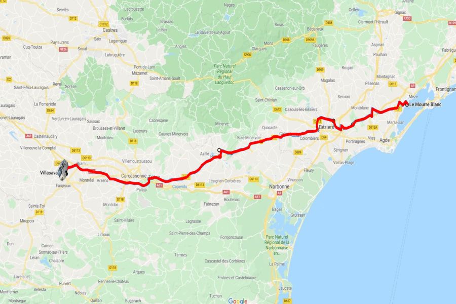 Le soleil est au rendez vous superbe. Nous allons récupérer les moules et les huitres commandées la veille, tout est c'est parfait. C'et reparti direction Béziers où nous voulons nous arrêter aus écluses de Fonséranes. Là aussi changement la mairie à construit un superbe parking, mais le tarif est assez dissuasif, et comme nous connaissont le site de Fonsérannes pour l'avoir visité plusieurs fois, nous ne laissons pas notre argent à ce nouveau piège à touriste. Nous voilà reparti nous empruntons la Minervoise qui serpente entre les vignes .Pettite halte en passant à Olonzac pour dire bonjour à un ami qui habite ce charmant village, puis nous arrivons à Trèbes où subsiste encore les traces des dernières inondations de gros travaux sont en cours mais il reste du travail. Le port est bien triste depuis que les platanes ont été rasés suite à la maladie du chancre coloré. Nous contournons Carcassonne pour arriver à notre étape du jour Villasavary où nous arrivons sous la pluie.
