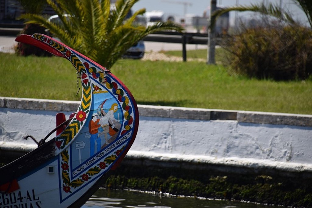 Départ du camping de bonne heure. Malgré notre inquiétude, nous avons finalement passé une relative bonne nuit. Notre 1ère halte de la jounée sera AVEIRO, petite ville balnéaire connue pour moliceiros, petits bateaux à moteur ressemblant à des gondoles. Bien que nous soyons hors saison, il y a pas mal de monde. Beaucoup de touristes font des balades sur ces petites embarcations, qui sont particulièrement colorées et décorées. Nous visitons la ville dont les maisons sont pour certaines d'entre elles assez pittoresques. Des azulejos en couleur décorent leur façade en trompe l'oeil. Au sol des pavés, représentent des images liées à la mer. Nous visitons aussi un des églises. Son intérieur est de style baroque, très chargé. Sur sa façade, on peut aussi y voir des azulejos traditionnels. Nous terminons notre matinée en achetant des souvenirs et des cartes postales. Cette petite ville est aussi réputée pour sa maroquinerie en liège. Enfin, nous achetons des pastillas qui régaleront notre dessert à midi. Après le déjeûner, nous nous rendons à COSTA NOVA, petite ville balnéaire, connue pour ses maisons colorées et rayées. Nous décidons de passer la nuit à FIGUEIRA DA FOZ dans un camping au bord de la mer. En chemin, le paysage nous est familier car il ressemble à s'y méprendre à celui des forêts pour se rendre sur les plages landaises. Au sein du camping, la sensation est la même. Avant d'entamer notre soirée, nous partons voir la mer. La dune est moins grande que dans Les Landes par contre la plage est grande et le sable est blanc et fin. Il fait 28° on se croirait en plein été.