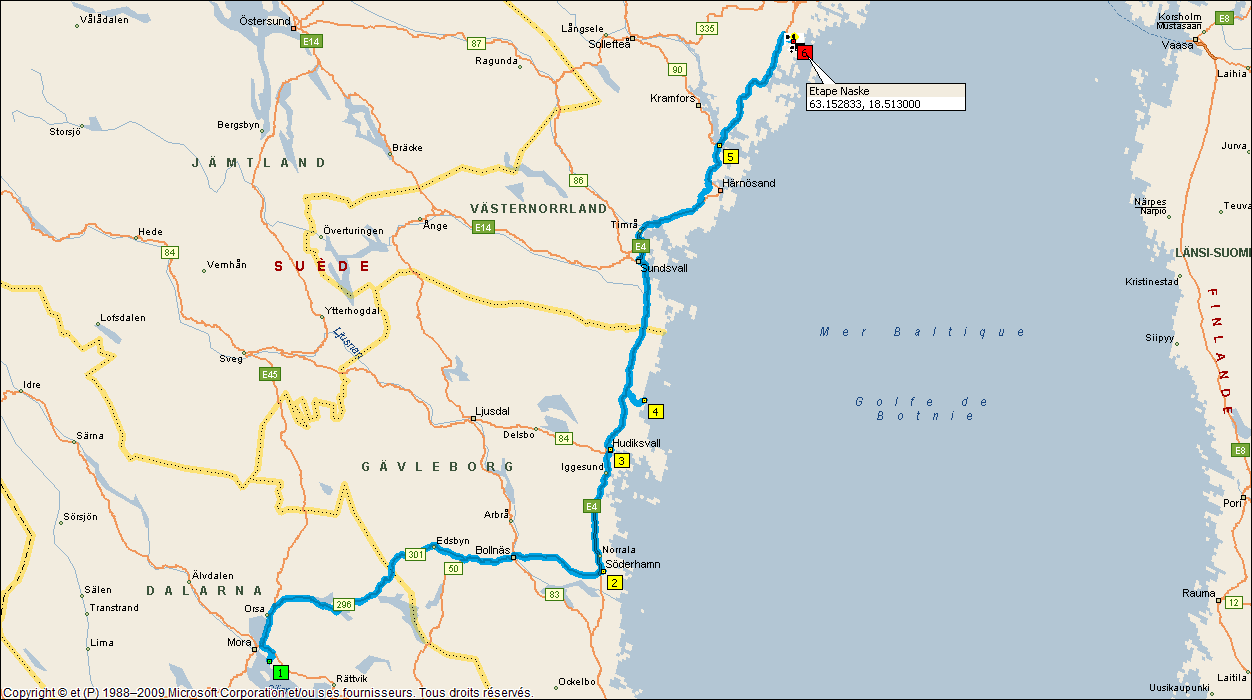 Nous reprenons la route vers 9 h pour 500 kms nous nous dirigeont de nouveau vers la côte du golfe de Botnie tout en continuant notre ascension vers la Finlande où nous serons sans doute vendredi.