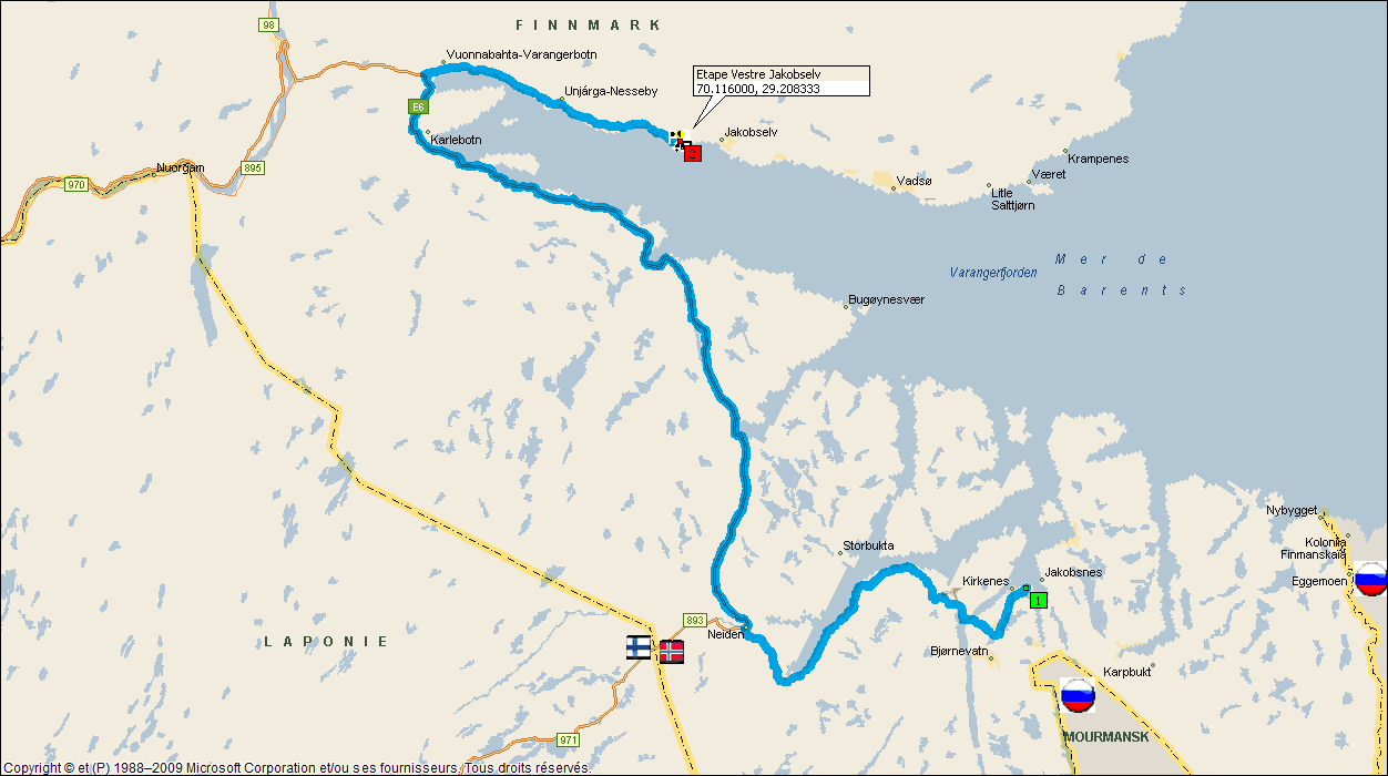 Tout le trajet nous longeons le fjord. Nous pouvons y voir aussi un élevage de saumon. Nous rencontrons aussi nos amis les rennes comme chaque jour. La route que nous empruntons pour nous rendre a Vadso contournele fjord jusqu'à son bou. Il est long d'au moins 30 kms.