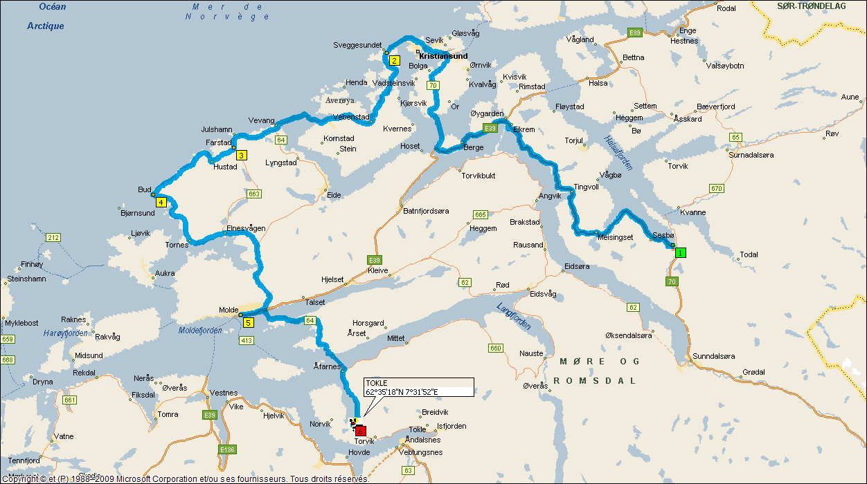 Nous decidons de nous arreter pour la nuit dans un petit camping à Tokle près de Isfjorden. Demain nous espérons que le temps sera comme aujourd'hui et même mieux car au proogramme nous avons la fameuse route des trolls avec ses épingles à cheveux très serrées et nous esperons avoir des conditions acceptables, surtout sans brouillard ni pluie afin de profiter au maximum de ce tracé.