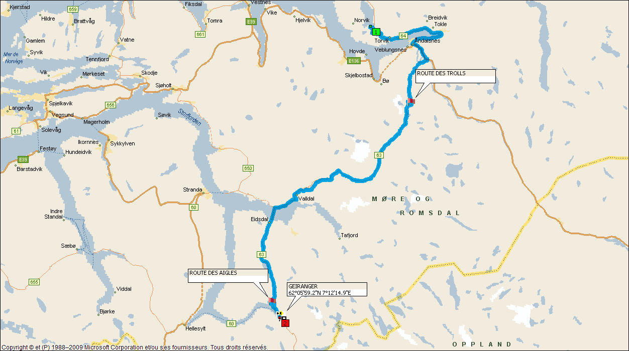 Nous quittons notre bivouac vers 11h en suivant le Romsaifjorden, nous traversons Andalsanes et quelques kilométres plus loin nous attaquons la route touristique 63 direction la montée de la Trollstingen.
