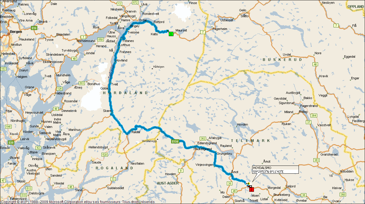 La route qui nous mène à Odda n'a rien à envier niveau largeur à celle empruntée hier. Nous longeons une branche de l'Harpangerfjord durant plusieurs kms. C'est dommage que le temps soit encore bas même s'il ne pleut plus. Après le déjeuner, le soleil fait son apparition et nous accompagnera toute la fin de journée.