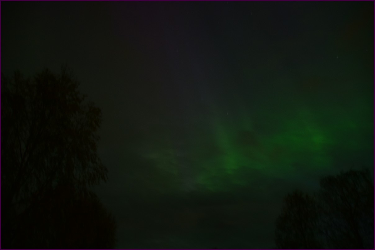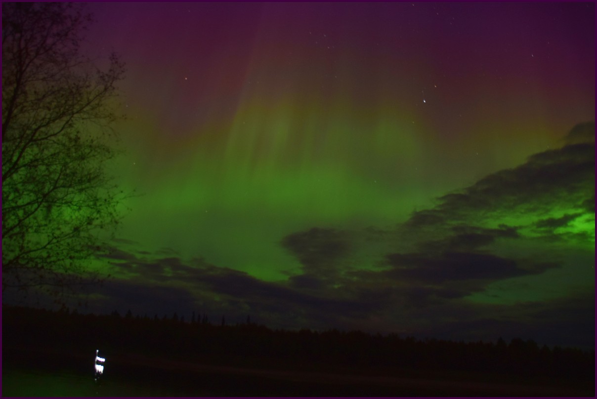 Aujourd'hui repos,lessive nous restons sur place. La soirée est annoncée avec de grosses aurores, mais les nuages et le vent sont là toute la journée. Vers 21h le ciel se dégage et à 22h, les premières lueurs verte apparaissent à l'horizon. D'un seul coup tout s'amplifie le ciel devein vert et rouge ça explose de tout les côtés, le spectacle est fantastique, malheureusement, les nuages reviennent et mettent court au spectacle.