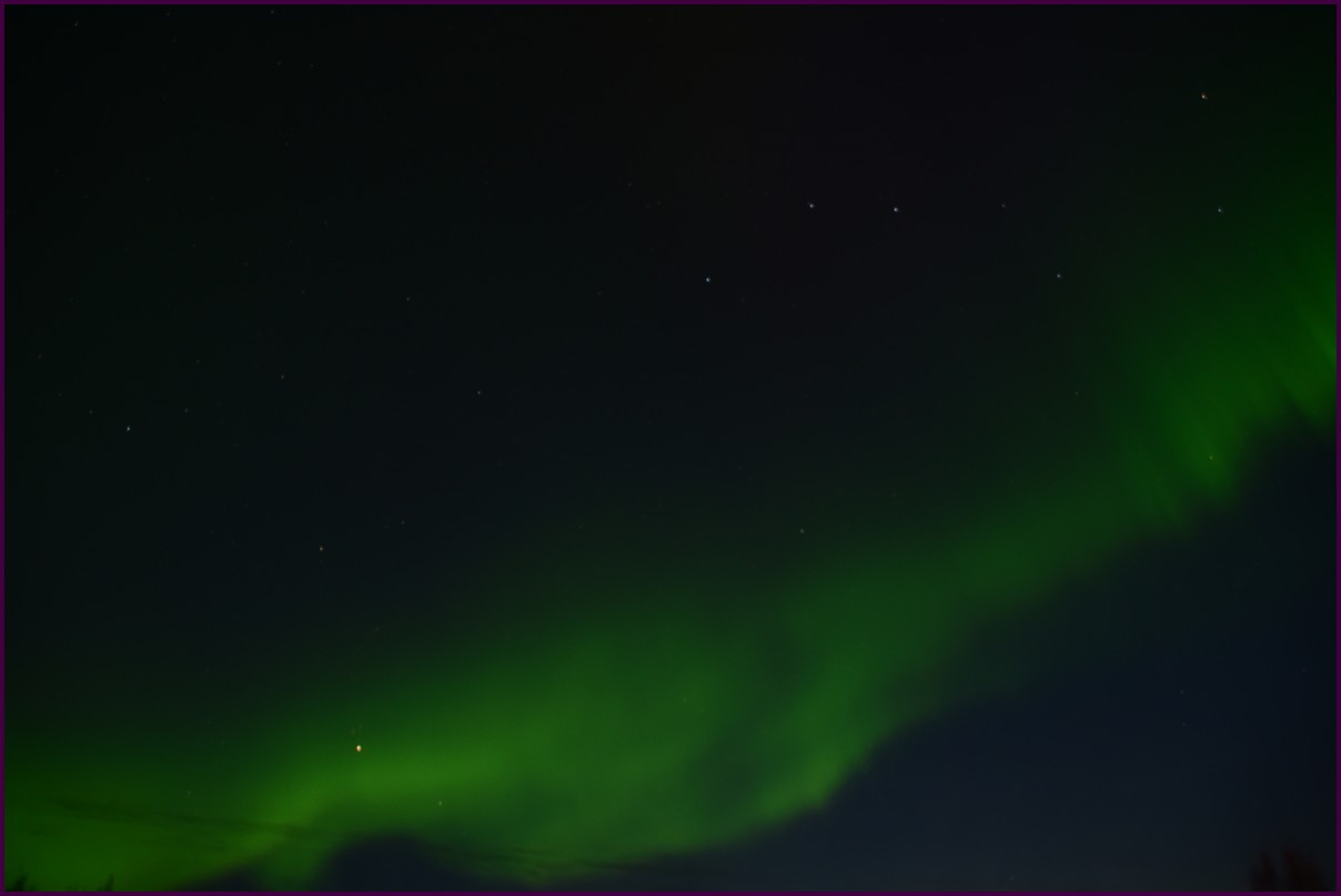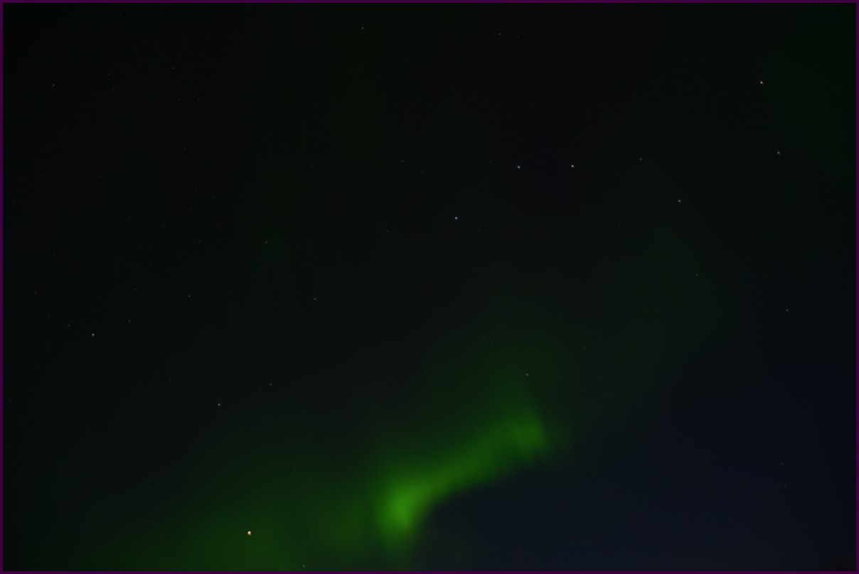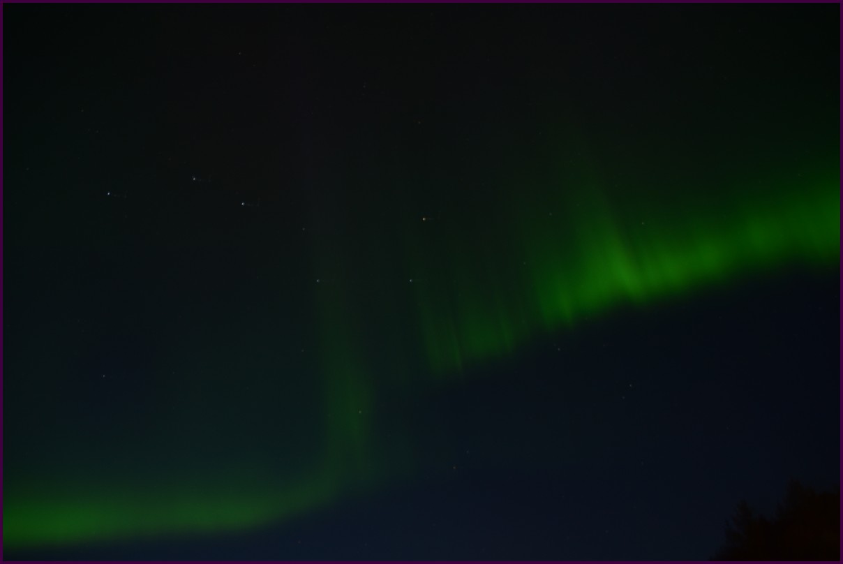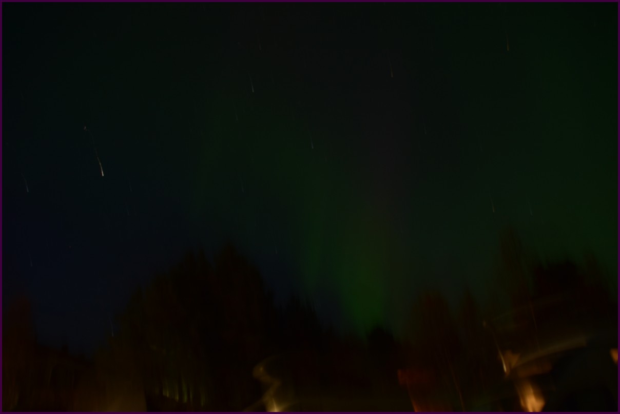 Ce matin il fait 0° autour de nous l'herbe est blanche, nous ne monterons pas plus haut en Finlande, après avoir étudié la météo pour ce soir, nous decidons de redescendres vers le "sud-ouest" de la Finlande un peu au dessus de la frontière avec la Suède. Sur notre route toujours beaucoup de lacs immense, nous rencontrons également des rennes, certains se tiennent tranquillement au milieu de la route. La nuit s'annonce froide alors camping pour l'électricité et le chauffage. Nous avons bien calculé vers 21h30, la danse commence dans le ciel. Les aurores apparaissent de tous les cötés pendant plus d'une heure, malheureusement l'intensité est moyenne mais c'est quand même un spectacle magique. Vers 23h on se réfugie dans le camping-car deors il fait -2° ça commence à serrer.
