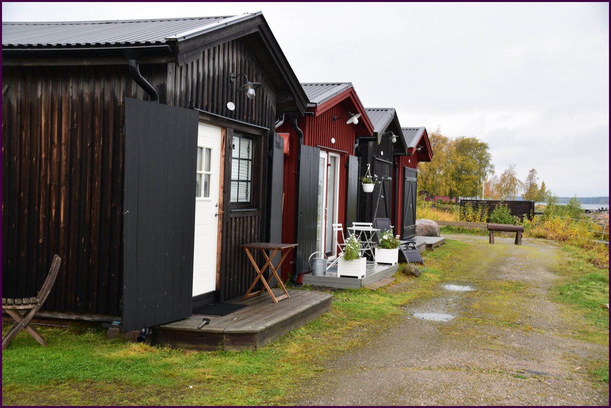 Ce matin la métèo est toujours aussi mauvaise, nous décidons de changer de place en espèrant un peu de ciel bleu. Peine perdu c'est encore une journéee pourrie limite tempête, nous nous réfugions dans une marina au bord du golfe de Botnie, c'est jolie comme tout avec plein de petite cabane alignée au bord de l'eau, se sont des petites résidences à une pièce très bien amménagées pour certaines, et de l'autre coté de grand hangar, dans lesquels sont stationnés de beau bateau de plaisance. Sur tous les batiment sont accrochées des pelles à neige et même sur certains des skis. La nuit tombe vite nous nous réfugions au chaud dans le camping-car.