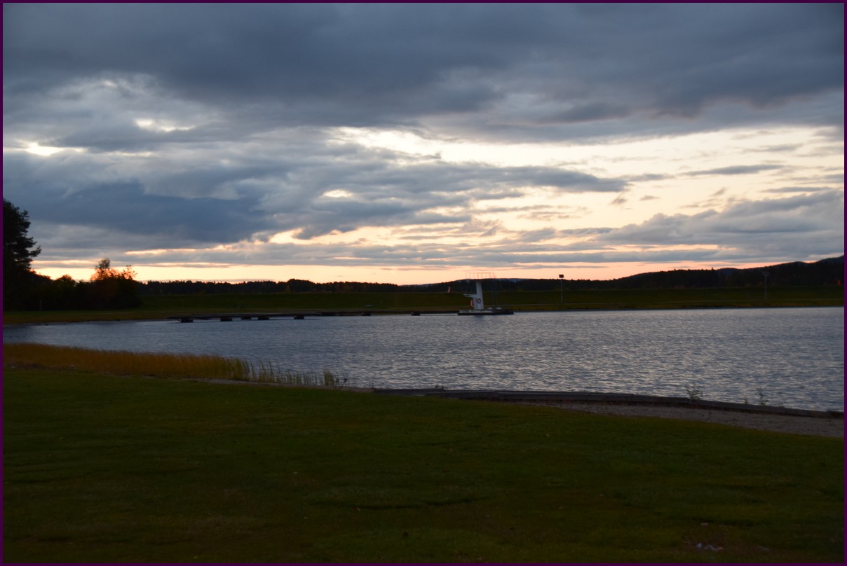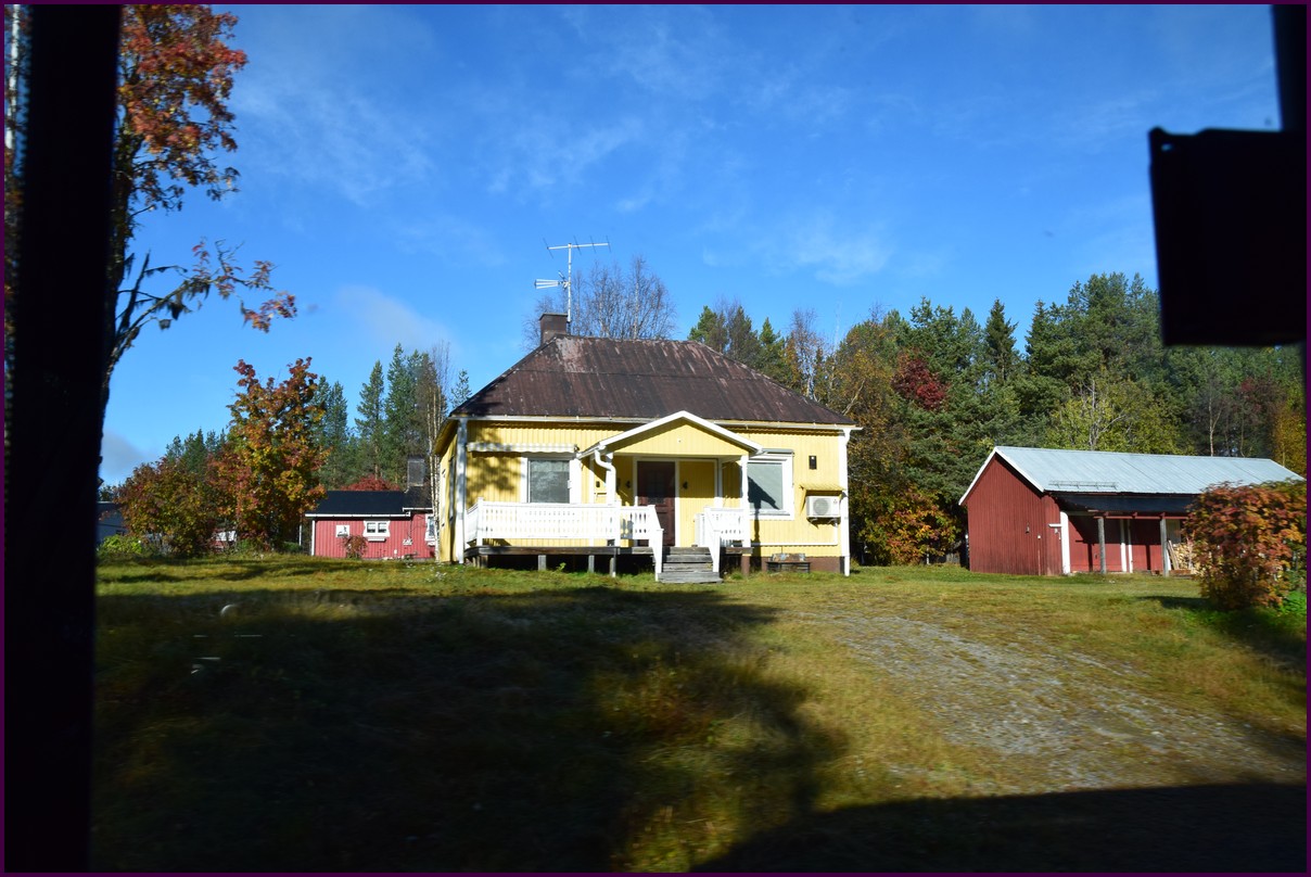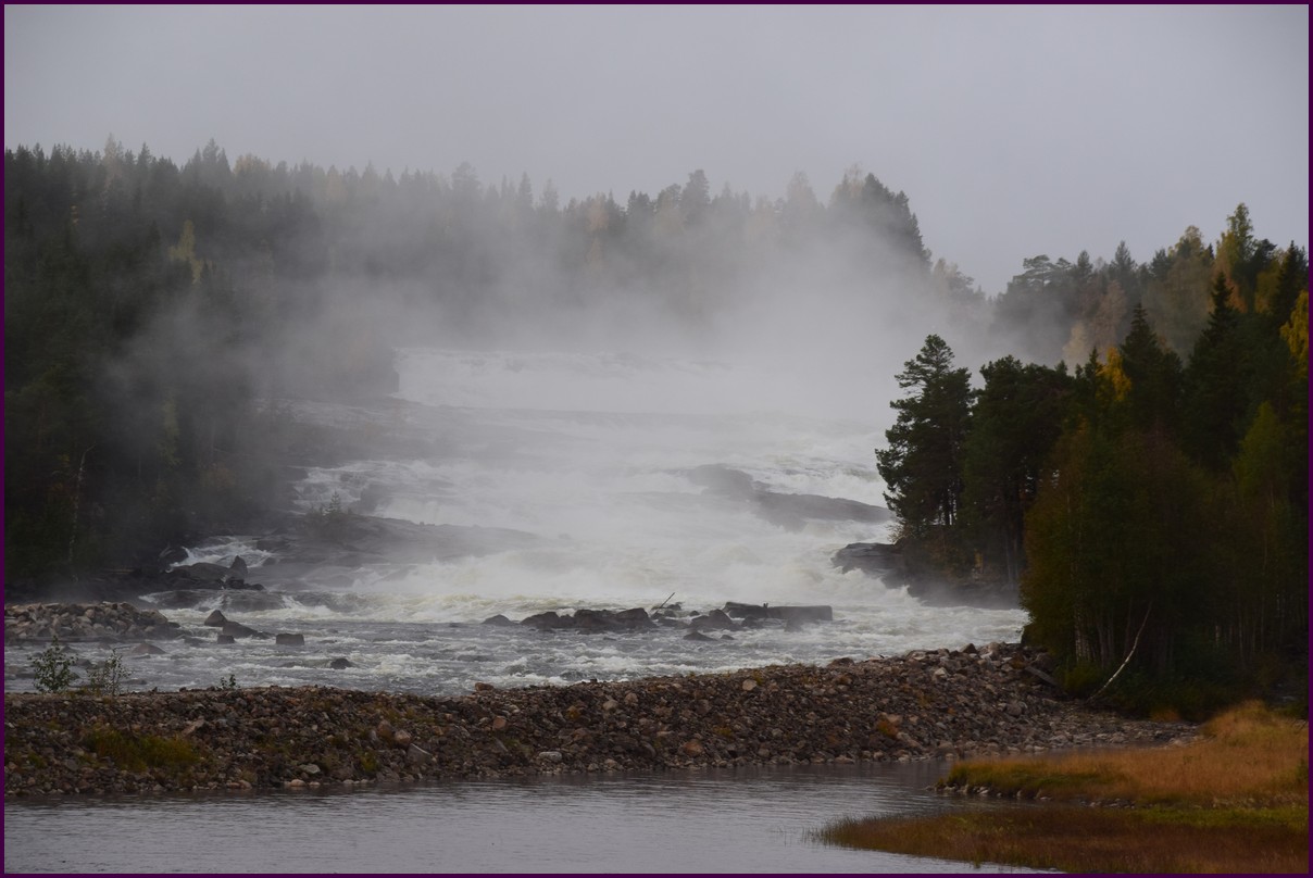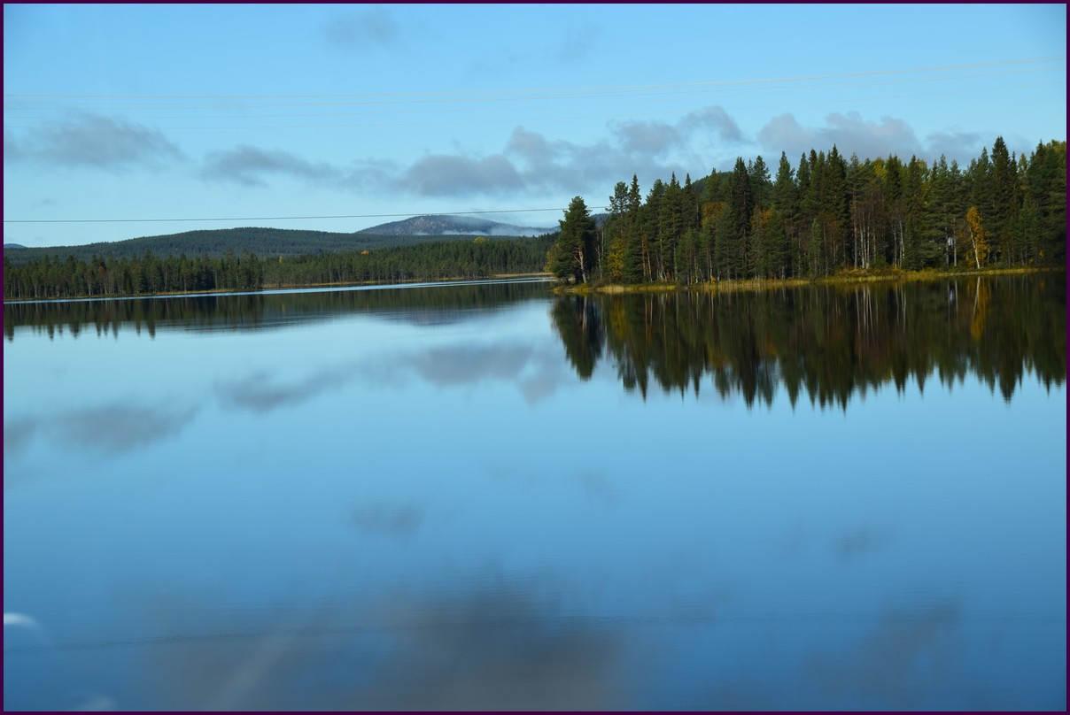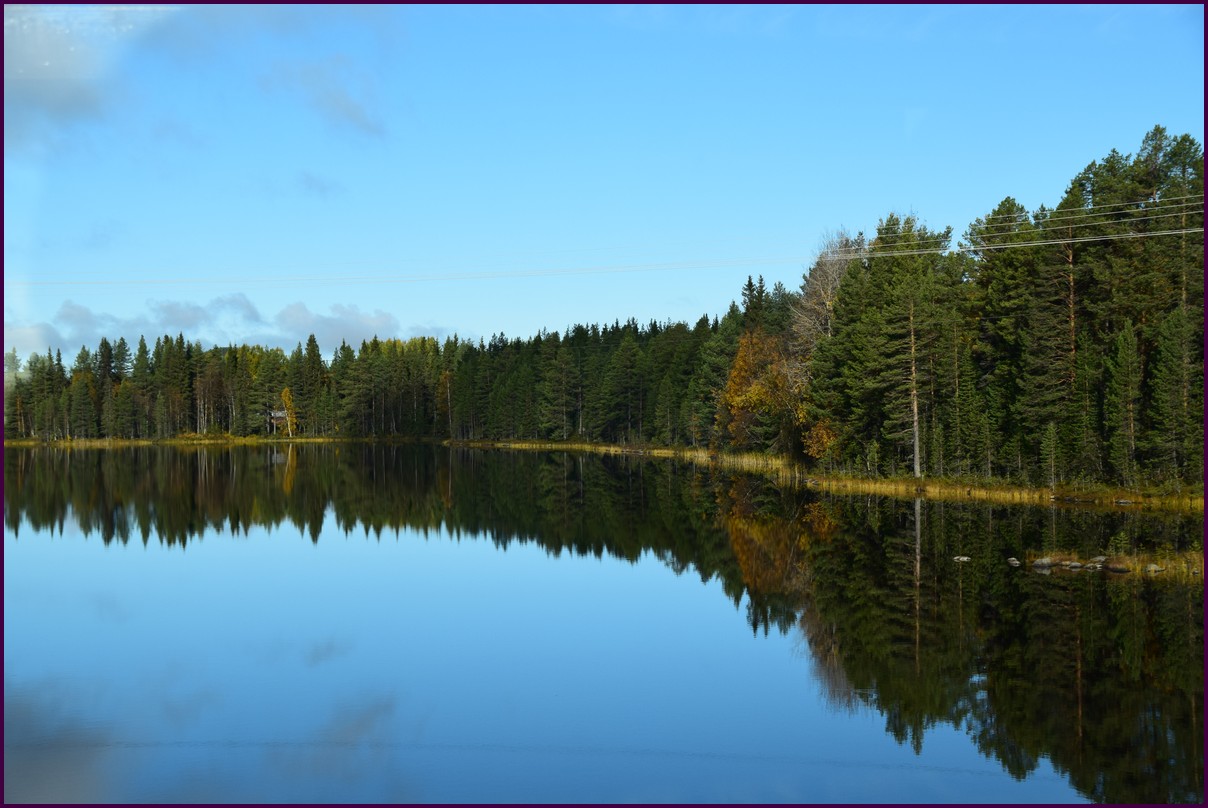 Toujours pas d'aurores cette nuit,nous décidons de prendre la route du retour par petites étapes. Ce matin,il fait 1° et il y a un épais brouillard. Nous reprenons la route au milieu des forêts de sapin à perte de vue, la circulation est pratiquement nulle nous croisons une voiture tous les 10 km en moyenne, on peu rouler tranquille. Le brouillard fini par se lever pour laisser place à un beau soleil, mais la tempèrature ne dépasse pas le 7°. Nous décidons de nous arrêter après 250 km on est pas pressé et nous caressons toujours l'espoir que les aurores viendront nous saluer.