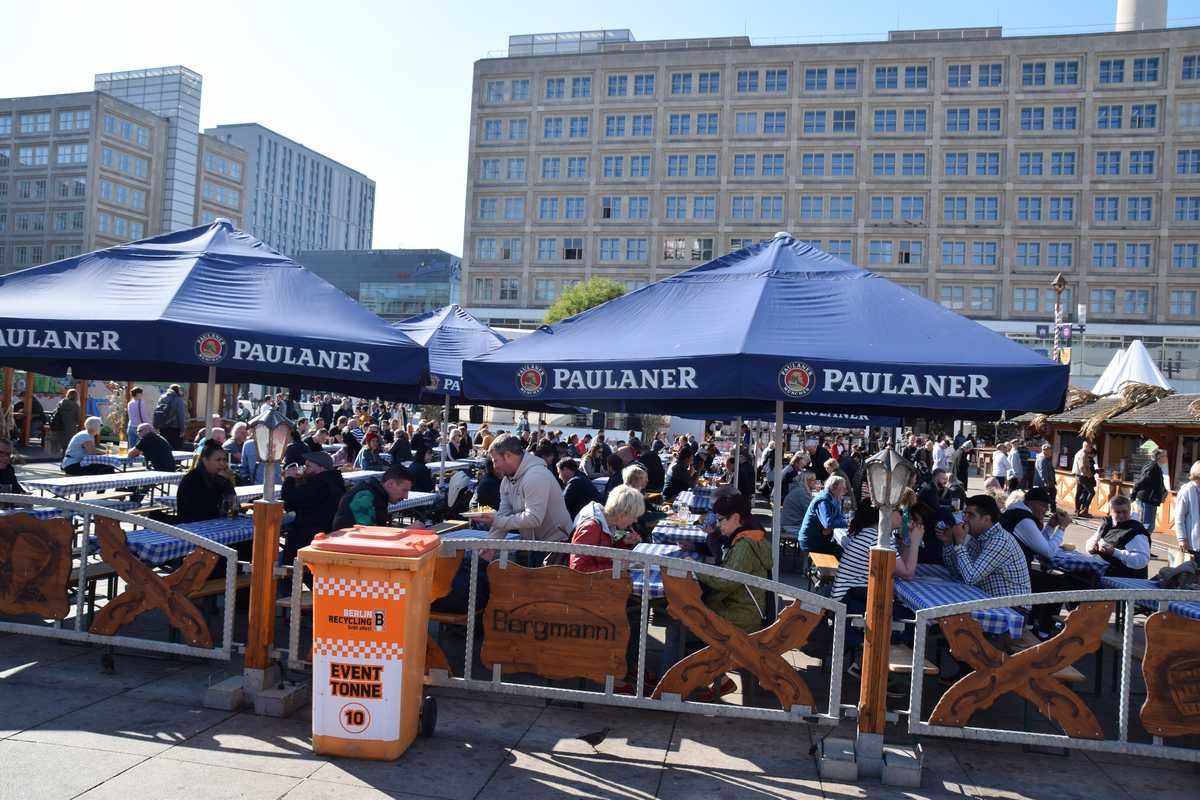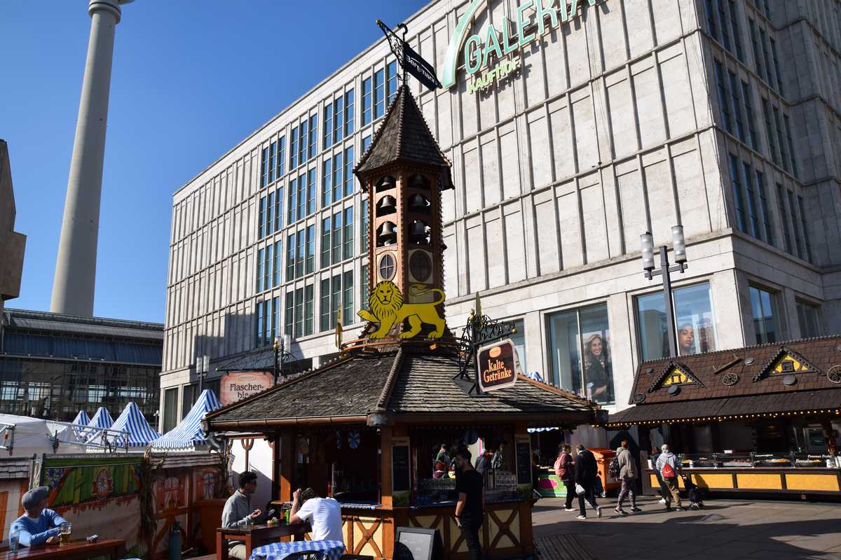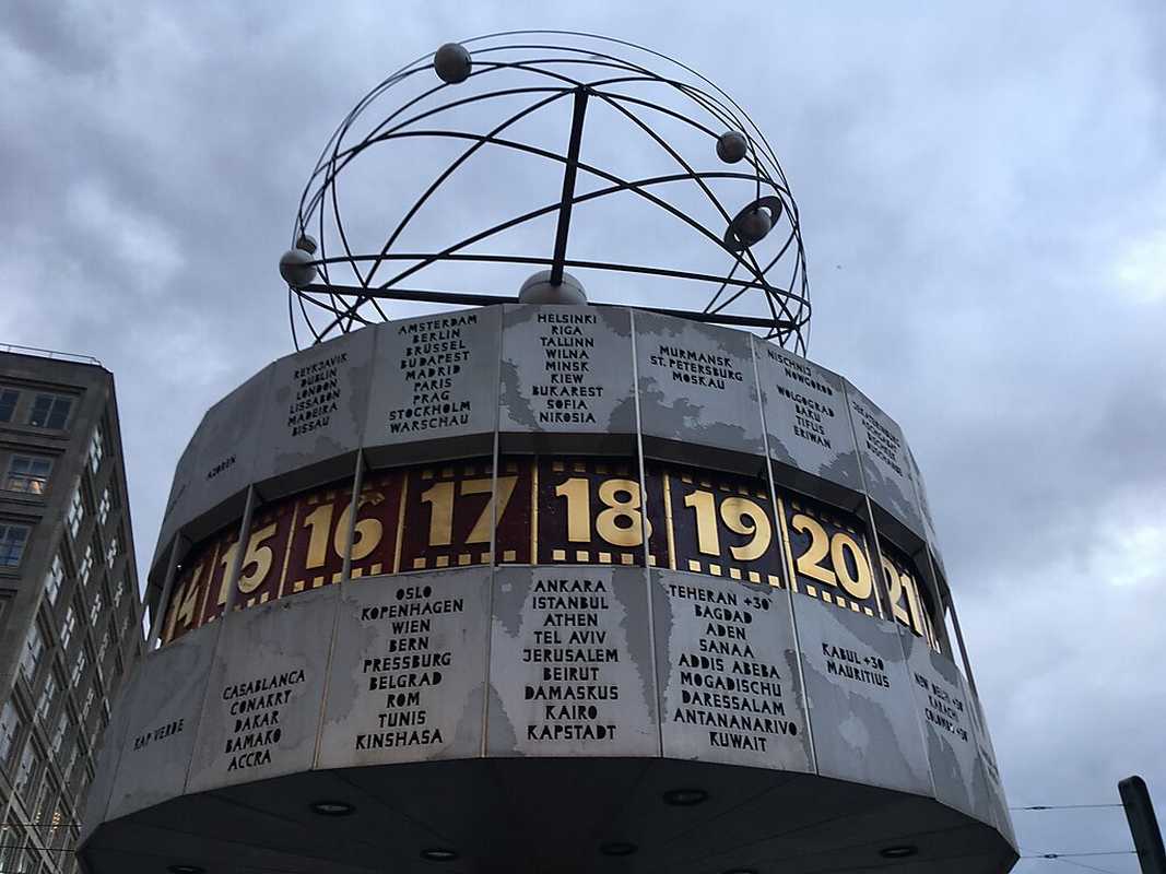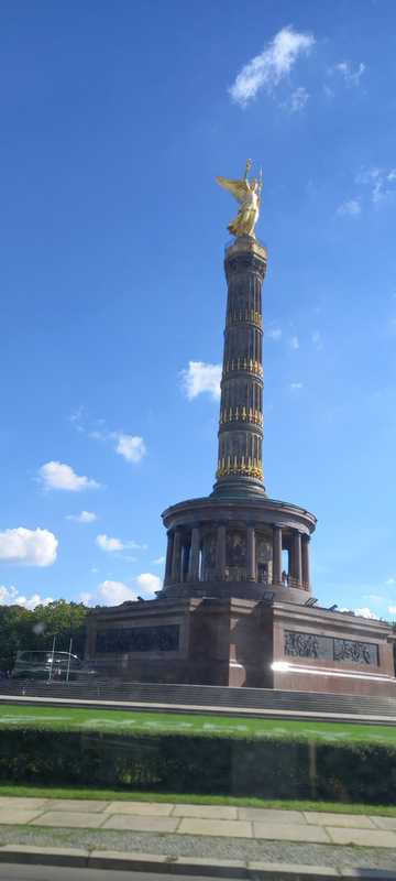 Ce matin beau soleil le temps est parfait pour notre tour complet de BERLIN que nous avons progammés. Nous avons décidés d'emprunter un bus HOP-ON HOP-OFF qui fait le tour des principaux sites où l'on peux descendre à chaque arrêt et reprendre le suivant il y en a un tous les 1/4 d'heure. Direction Alexanderplatz via le métro (pas de soucis avec un chien ils sont parfaitement acceptés dans les transports en commun), et on découvre la place avec son horloge rotative Weltzeituhr qui donne les heures de toutes les capitales du monde et de l'autre côté l'immense Tour de la télévision FERNSEHTURM avec son restaurant tournant. L'Alexanderplatz quand à elle est en travaux sur une grande partie et sur le reste il y a de nombreuse maison en bois genre marché de Noël ou l'on vend des souvenirs, de la bière, et beaucoup de stands de restauration avec de nombreuses tables qui sont pratiquement toutes occupés le soleil étant de la partie. Nous prenons nos billets et direction l'arrêt du bus. Ce sont des bus comme dans le temps rouge à étage.