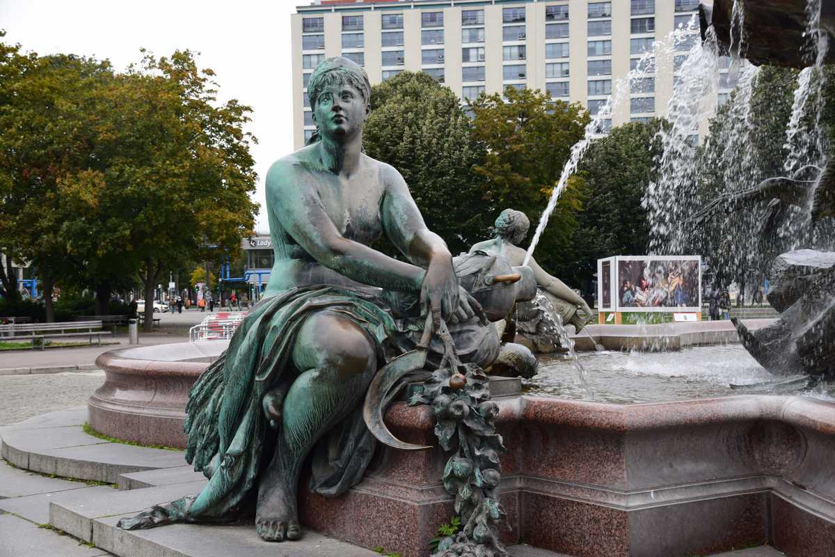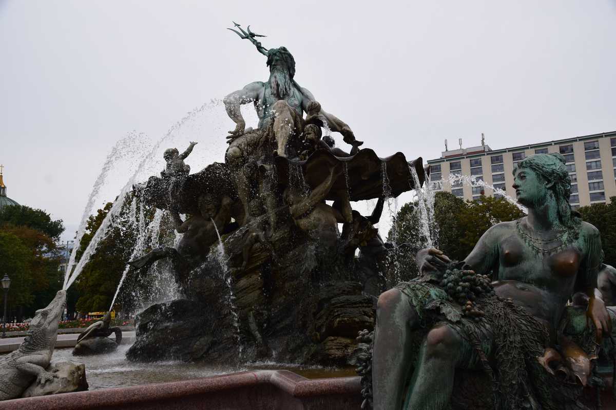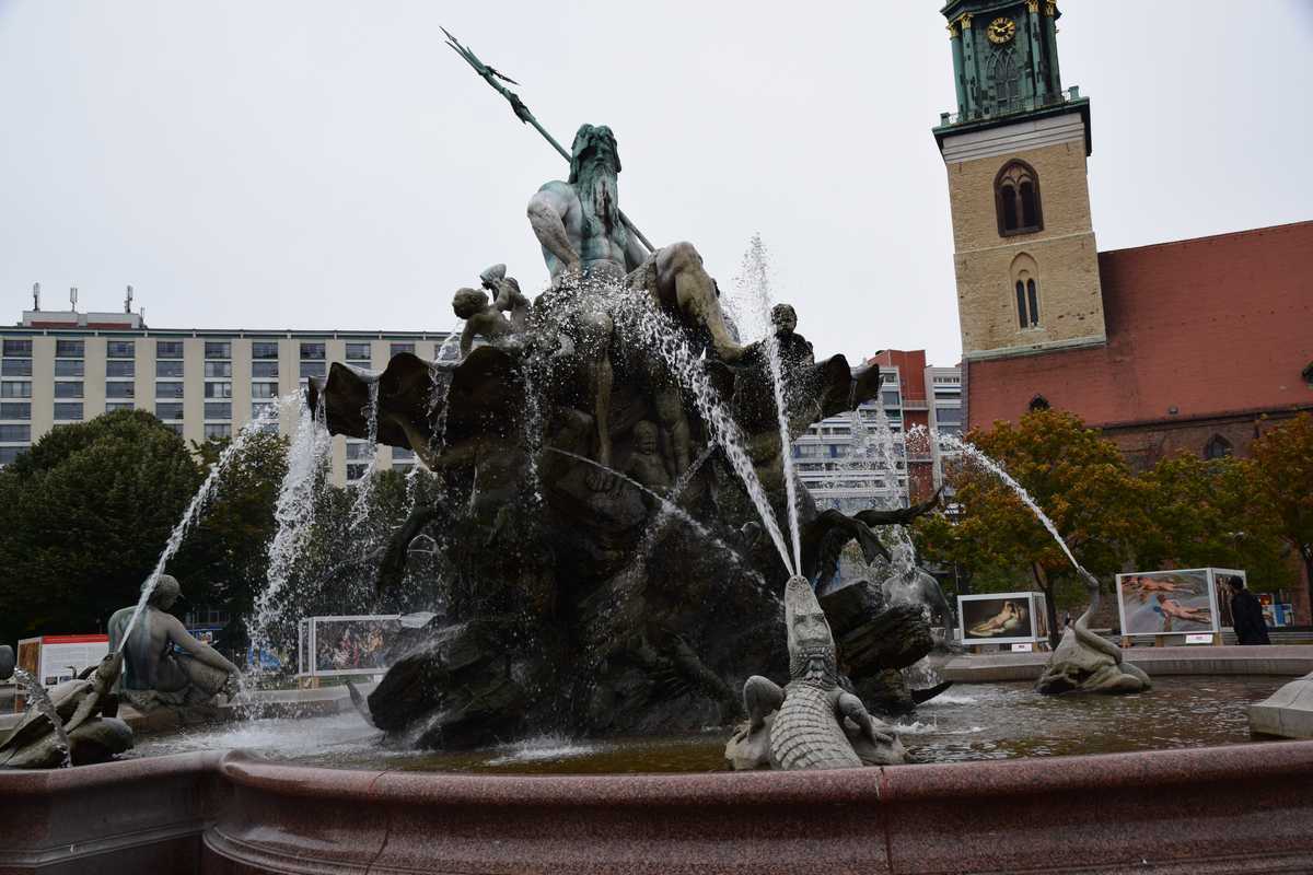 3eme jour à Berlin. Ce matin le temps est couvert. Nous repartons direction Berlin-Gesundbrunnen pour prendre le métro. Nous commencont à mieux maitriser le système de ticket. Direction Alexanderplatz. Nous faisons le tour d'Alexanderplatz, avec toujours la tour de la télèvision qui domine la place de ses 368 m, un peu plus loin nous pouvons admirer la splendide FONTAINE DE NEPTUNE fontaine représentant le dieu romain de la mer, Neptune, et 4 femmes symbolisant les principaux fleuves de Prusse. Juste en face le ROTES RATHAUS est l'hôtel de ville de Berlin, siège du bourgmestre-gouverneur et de son « gouvernement », le Sénat de Berlin tout en briques rouges. Nous reprenons le bus HOP-ON HOP-OFF nous nous trompons de sens donc nous voilà reparti à refaire le tour comme la veille. Descente de la KARL MARX ALLEE, passage par la STRAUSBERGER PLATZ nous voilà de retour à l'EAST SIDE GALLERY on en profite pour aller jusqu'au pont traversant la Sprée L’OBERBAUMBRUCKE. On reprend nôtre bus tour de BERLIN direction la KUDAM nous passons devant la LA PORTE DE L'ELEPHANTS l'entrée du ZOO on descend la Kurfürstendamm qui bien changée beaucoup de boutiques de luxe pour arriver à la Kaiser-Wilhelm-Gedächtnis-Kirche l'église cassée là rien n'a changé l'EUROPA CENTER est toujours mais devant il y a une grande fontaine et sur la place plein de stand de vente de bière, saucisses en tout genre, un petit tour à l'intérieur de l'EUROPA où je découvre en plein centre une horloge à eau qui n'existait pas. Nous reprenons notre bus direction Alexanderplatz