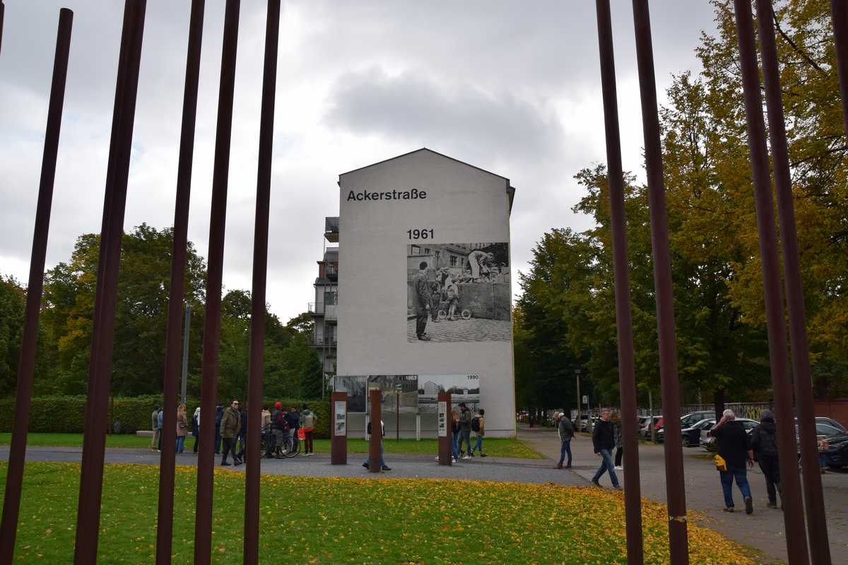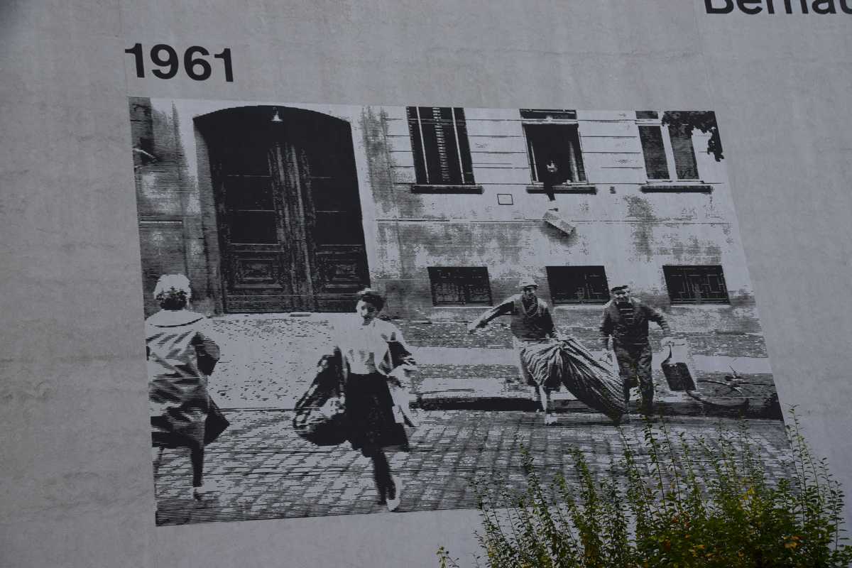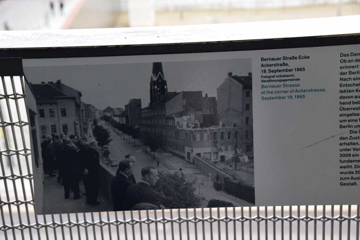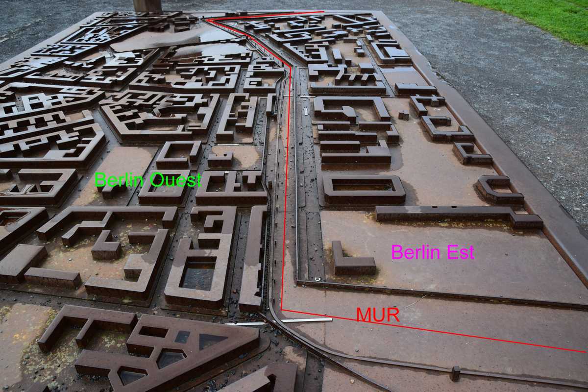 Dimanche dernier jour à BERLIN ce matin nous n'allons pas loin deux stations de métro direction Bernauer Straße sur les traces des vestiges du Mur, un endroit que je connaissait bien situé dans le secteur français. Sortie du métro je découvre une belle avenue moderne il faut remonter sur une centaine de métres pour découvrir les premiers vestiges du mur sur les facades des maisons s'affichent d'immense photos qui rappelent les événements majeurs de cette époque. Sur l'emplacement de l'ancien mur côté ouest de grandes barres en fer scellées dans le sol rappelle le tracé. Dans la pelouse également une ligne de pavée matérialise l'un des plus gros tunnel creusé por s'évader le TUNNEL 57 en avencant encore on trouve l’endroit où l’église de la réconciliationVERSOHNUNGSKIRCHE fût détruite, à sa place la Chapelle de la réconciliationKAPELLE DER VERSOHNUNG est érigée. Nous arrivons sur la partie où le mur à été conservé dans son intégralité avec son mirador, celà donne une petite idée de ce qu'était la réalité de cette frontière. Juste en face se tient le Gedenkstätte Berliner Mauer mémorial du mur de Berlin où de nombreuses photos et vidéo rappelle les sombres heures du passés. Nous repartons pour la deuxième partie de notre visite direction KURT-SHULACHER PLATZ afin de revoir le lieu où j'ai passé quelques année LE QUARTIER NAPOLEON en sortant du métro j'ai un peu de mal à me repèrer la place a pas mal changée mais finalement nous arrivons devant les grilles de la caserne aujourd'hui JULIUS-LEBER-KASERNE
