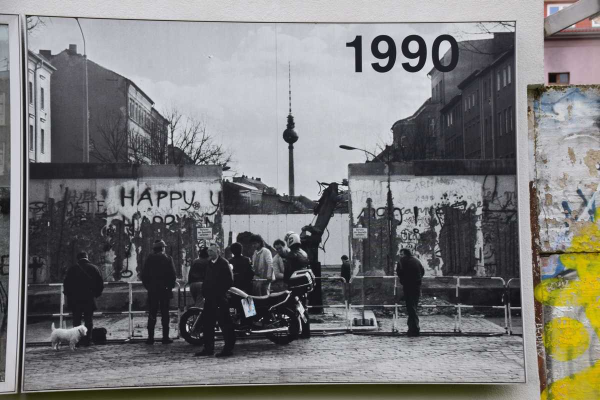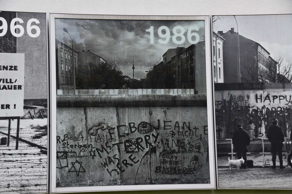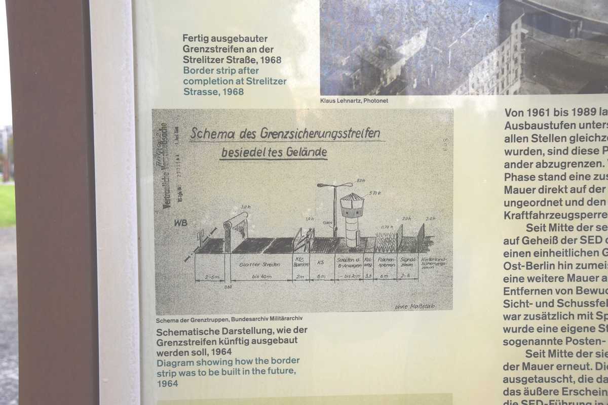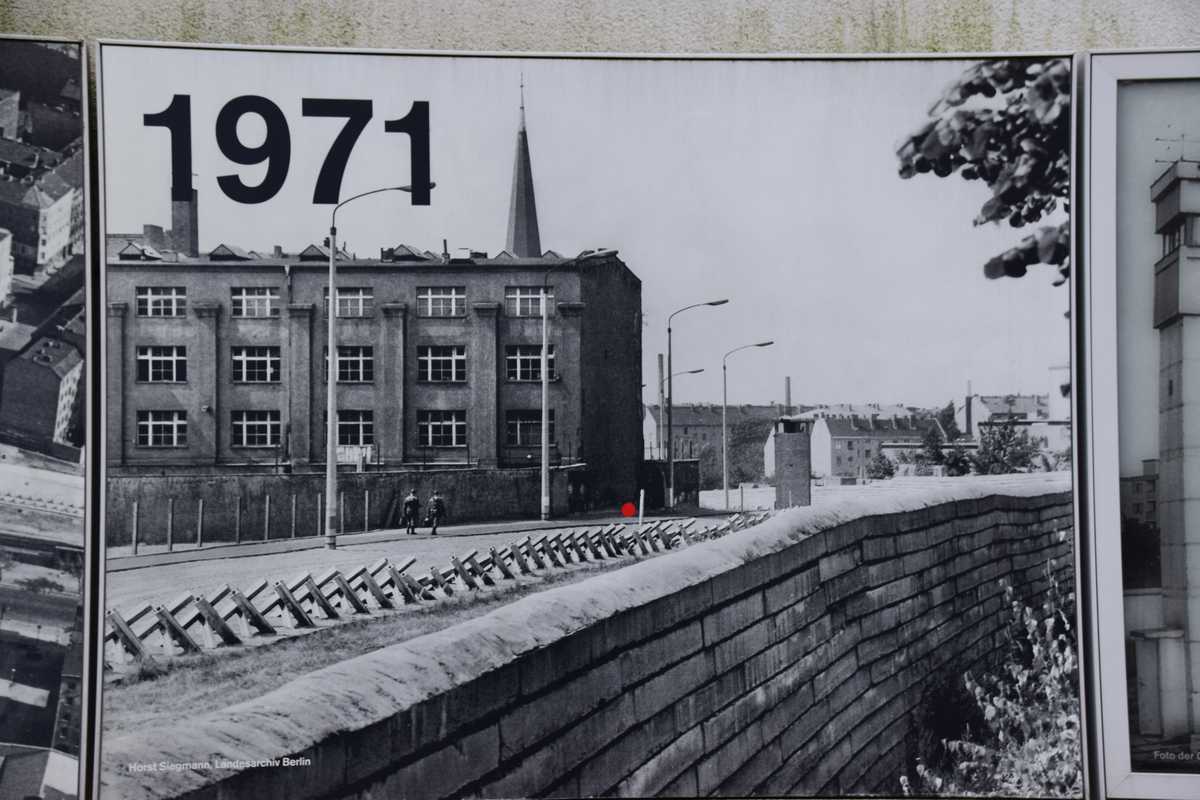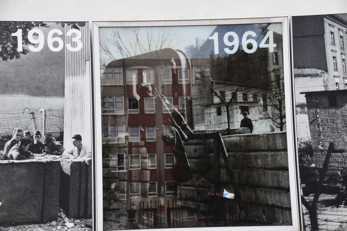 Dimanche dernier jour à BERLIN ce matin nous n'allons pas loin deux stations de métro direction Bernauer Straße sur les traces des vestiges du Mur, un endroit que je connaissait bien situé dans le secteur français. Sortie du métro je découvre une belle avenue moderne il faut remonter sur une centaine de métres pour découvrir les premiers vestiges du mur sur les facades des maisons s'affichent d'immense photos qui rappelent les événements majeurs de cette époque. Sur l'emplacement de l'ancien mur côté ouest de grandes barres en fer scellées dans le sol rappelle le tracé. Dans la pelouse également une ligne de pavée matérialise l'un des plus gros tunnel creusé por s'évader le TUNNEL 57 en avencant encore on trouve l’endroit où l’église de la réconciliationVERSOHNUNGSKIRCHE fût détruite, à sa place la Chapelle de la réconciliationKAPELLE DER VERSOHNUNG est érigée. Nous arrivons sur la partie où le mur à été conservé dans son intégralité avec son mirador, celà donne une petite idée de ce qu'était la réalité de cette frontière. Juste en face se tient le Gedenkstätte Berliner Mauer mémorial du mur de Berlin où de nombreuses photos et vidéo rappelle les sombres heures du passés. Nous repartons pour la deuxième partie de notre visite direction KURT-SHULACHER PLATZ afin de revoir le lieu où j'ai passé quelques année LE QUARTIER NAPOLEON en sortant du métro j'ai un peu de mal à me repèrer la place a pas mal changée mais finalement nous arrivons devant les grilles de la caserne aujourd'hui JULIUS-LEBER-KASERNE