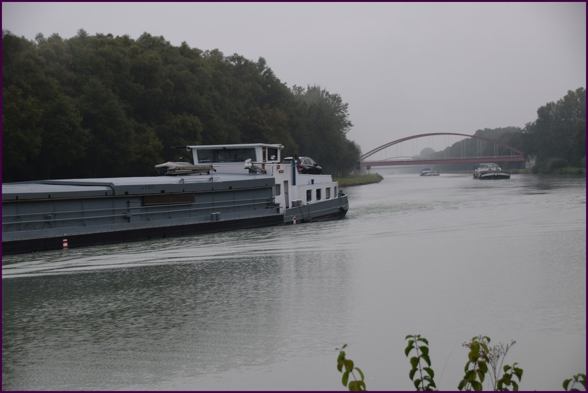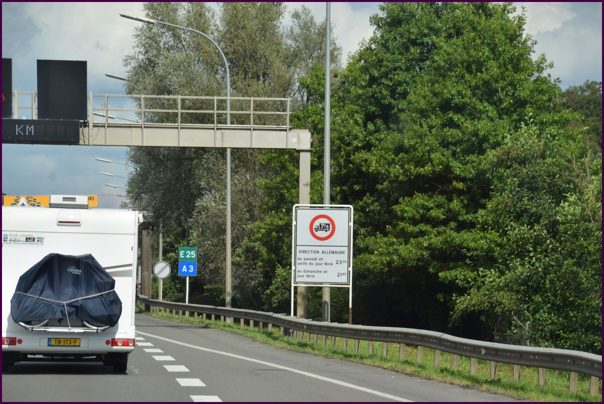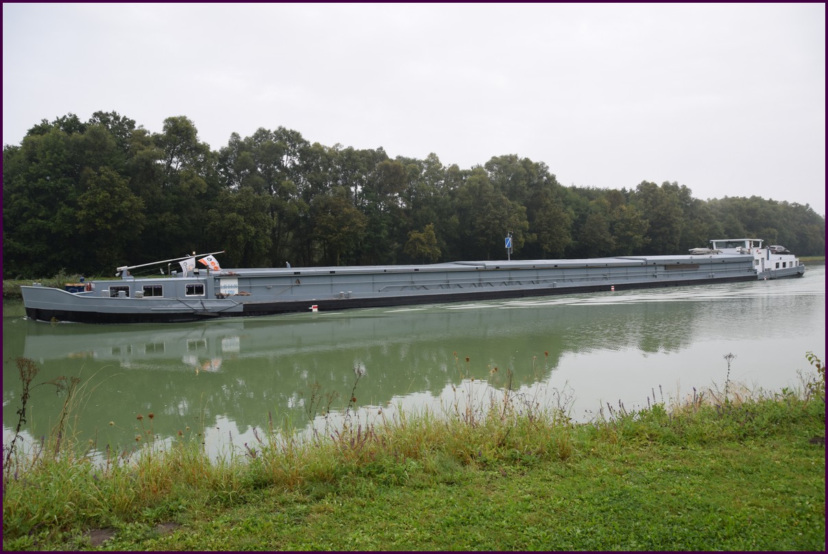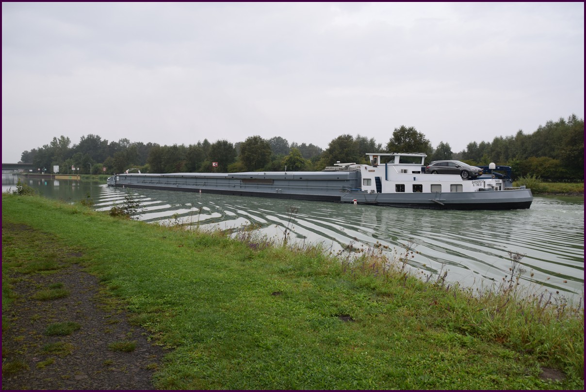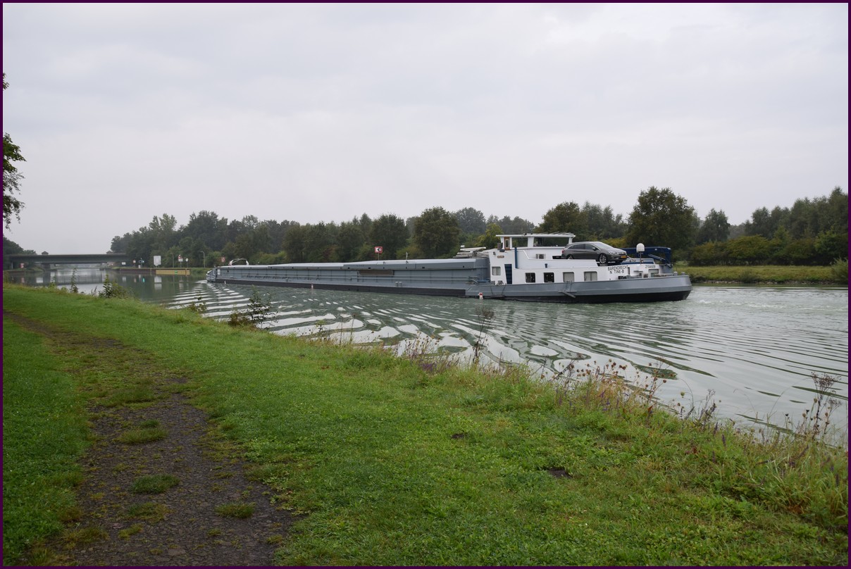C'est reparti ce matin 8h encore une longue étape. Nous faisons le plein en passant au Luxembourg, 1,41€ le litre. Ensuite c'est les autoroutes allemandes, ça roule vite, mais de nombreux travaux font baisser la moyenne, beaucoup d'attention au volant il y a beaucoup de camions, et les voitures dépassent largement les vitesses qui sont autorisées en France. Nous arrivons vers 18h30 à notre étape, au dessus de Munster, nous nous étions arrêté là déjà en 2015 lors de notre premier voyage. Nous sommes dans une marina au bord d'un canal et nous pouvons voir passer des péniches de 100m de long le trafic est assez important.
