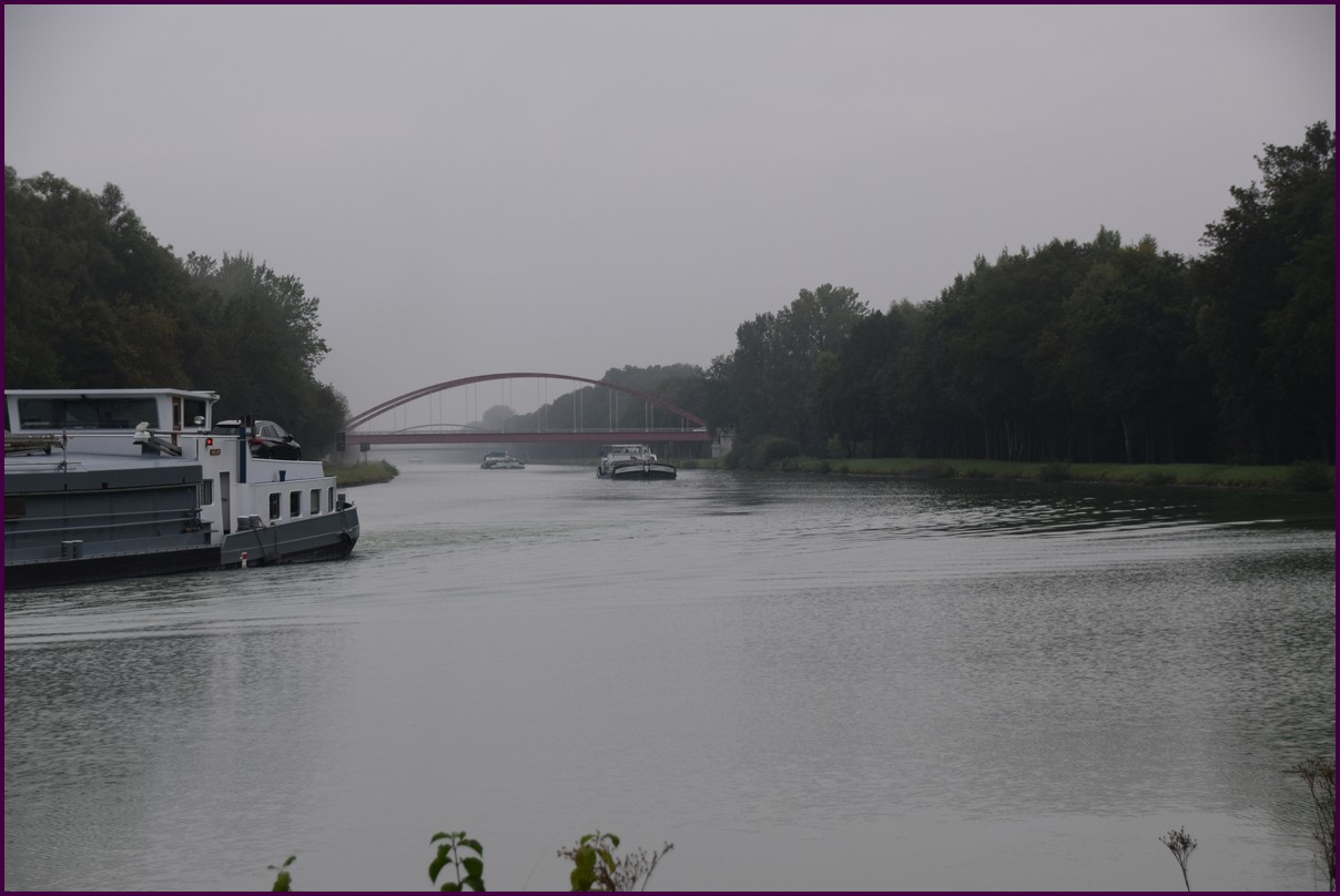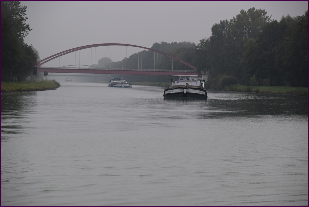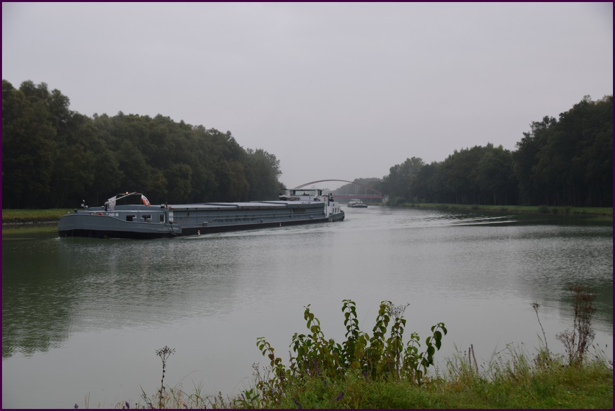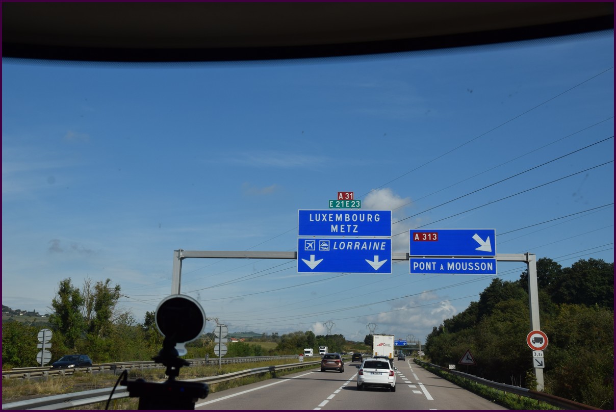 C'est reparti ce matin 8h encore une longue étape. Nous faisons le plein en passant au Luxembourg, 1,41€ le litre. Ensuite c'est les autoroutes allemandes, ça roule vite, mais de nombreux travaux font baisser la moyenne, beaucoup d'attention au volant il y a beaucoup de camions, et les voitures dépassent largement les vitesses qui sont autorisées en France. Nous arrivons vers 18h30 à notre étape, au dessus de Munster, nous nous étions arrêté là déjà en 2015 lors de notre premier voyage. Nous sommes dans une marina au bord d'un canal et nous pouvons voir passer des péniches de 100m de long le trafic est assez important.