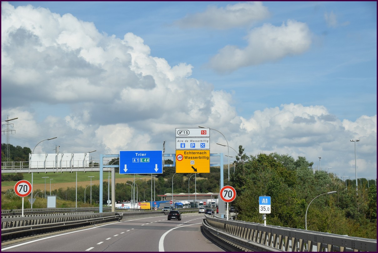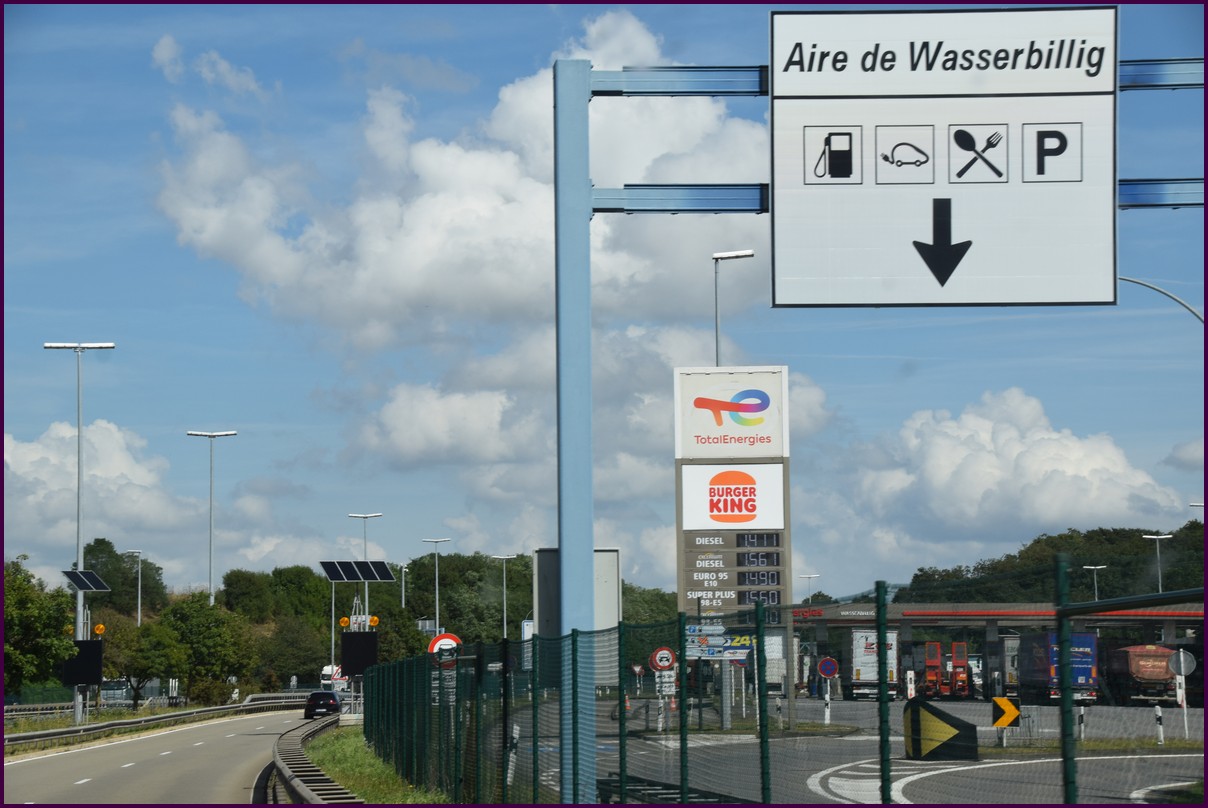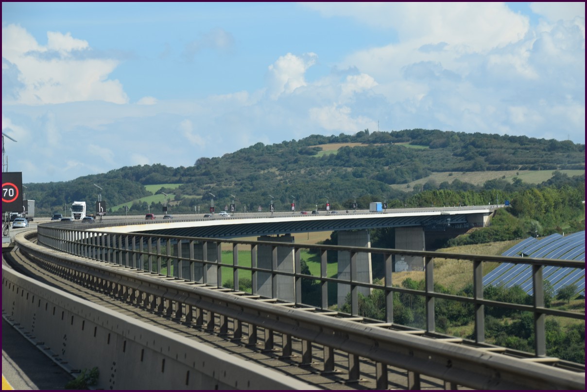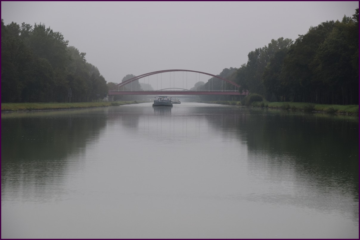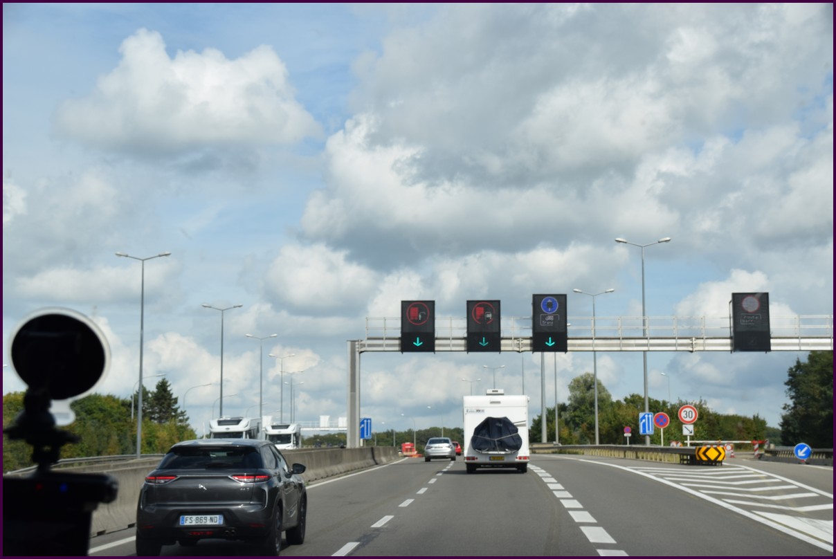 C'est reparti ce matin 8h encore une longue étape. Nous faisons le plein en passant au Luxembourg, 1,41€ le litre. Ensuite c'est les autoroutes allemandes, ça roule vite, mais de nombreux travaux font baisser la moyenne, beaucoup d'attention au volant il y a beaucoup de camions, et les voitures dépassent largement les vitesses qui sont autorisées en France. Nous arrivons vers 18h30 à notre étape, au dessus de Munster, nous nous étions arrêté là déjà en 2015 lors de notre premier voyage. Nous sommes dans une marina au bord d'un canal et nous pouvons voir passer des péniches de 100m de long le trafic est assez important.