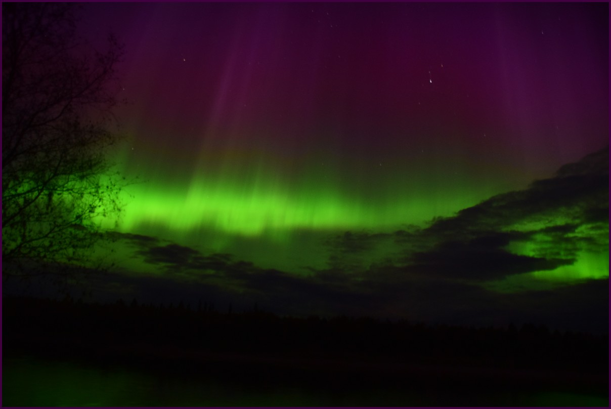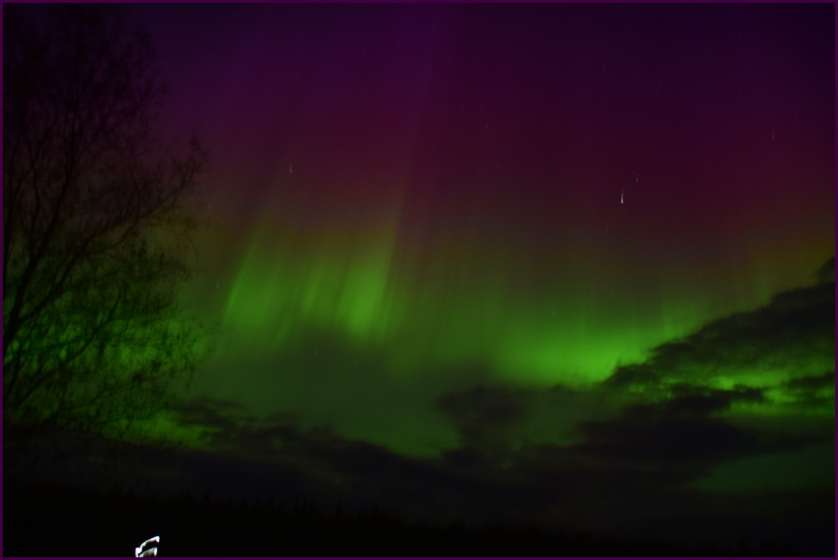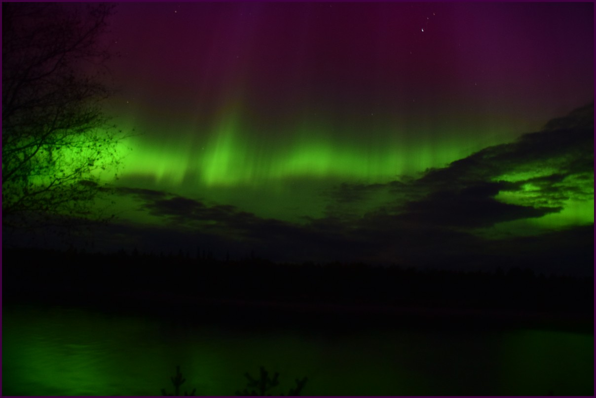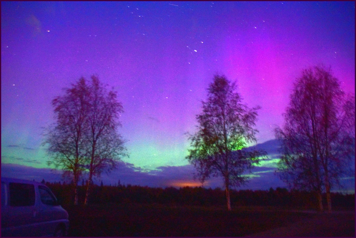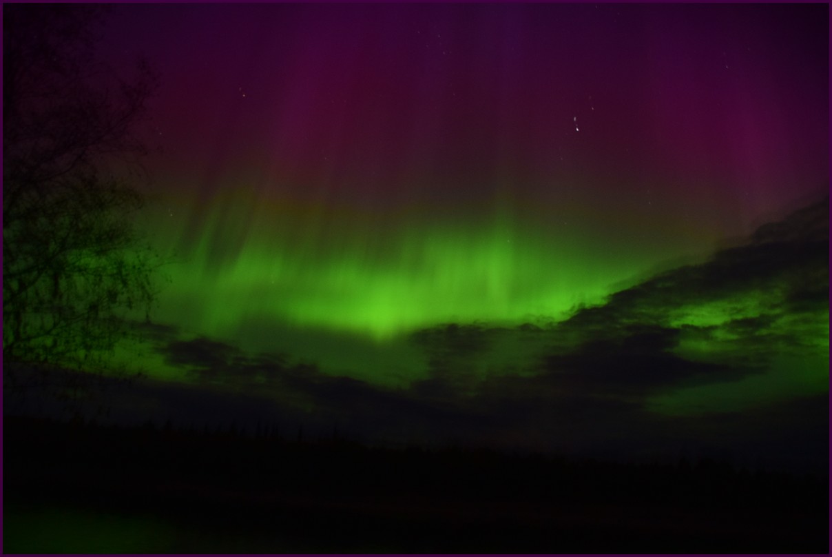 Aujourd'hui repos,lessive nous restons sur place. La soirée est annoncée avec de grosses aurores, mais les nuages et le vent sont là toute la journée. Vers 21h le ciel se dégage et à 22h, les premières lueurs verte apparaissent à l'horizon. D'un seul coup tout s'amplifie le ciel devein vert et rouge ça explose de tout les côtés, le spectacle est fantastique, malheureusement, les nuages reviennent et mettent court au spectacle.