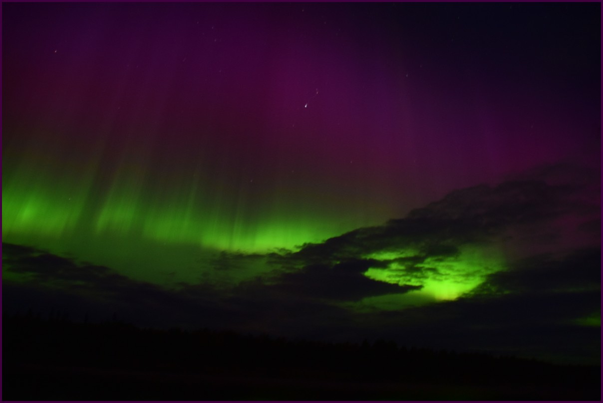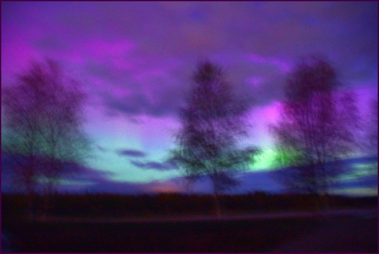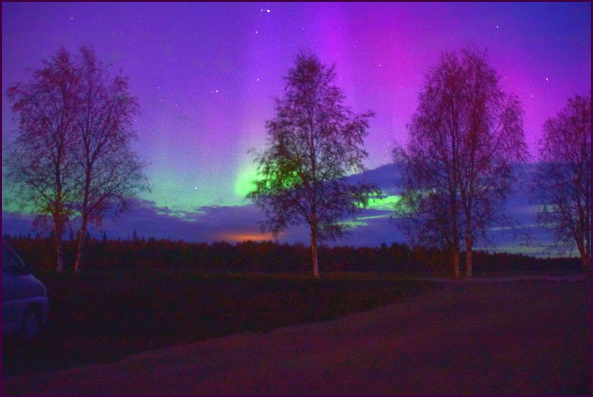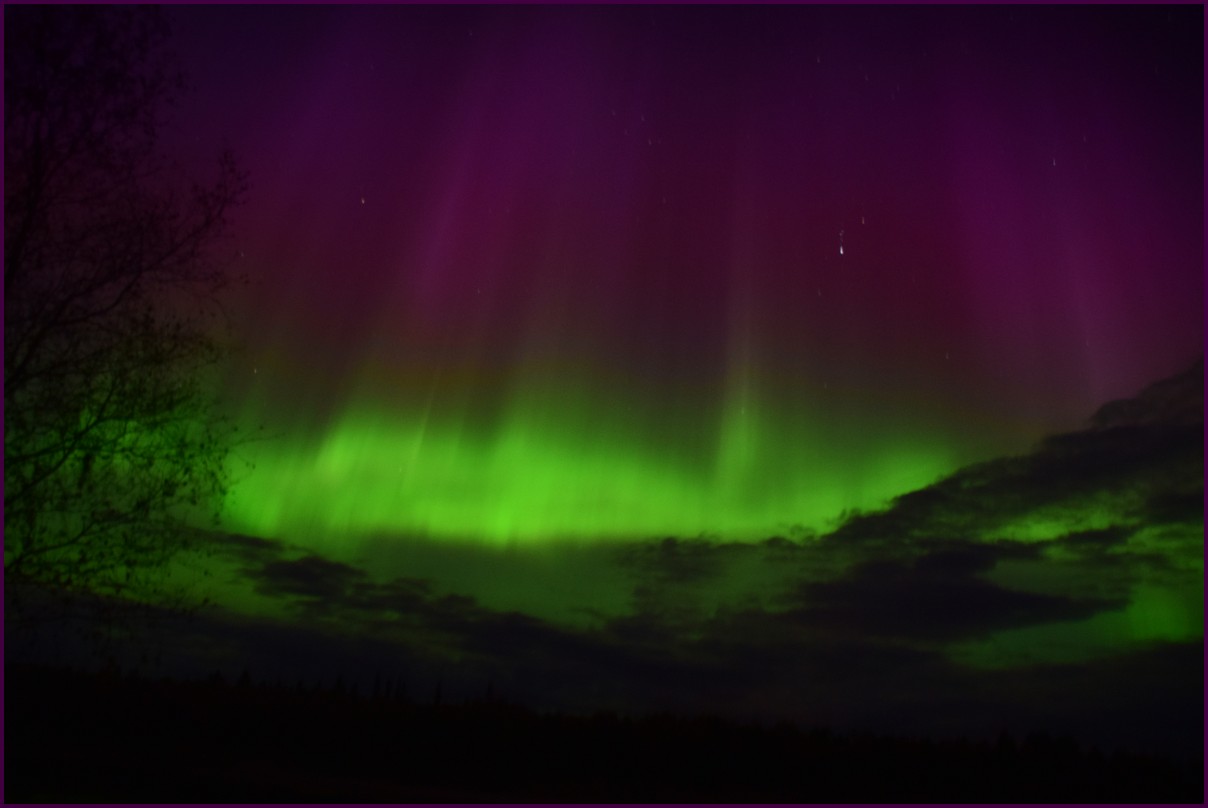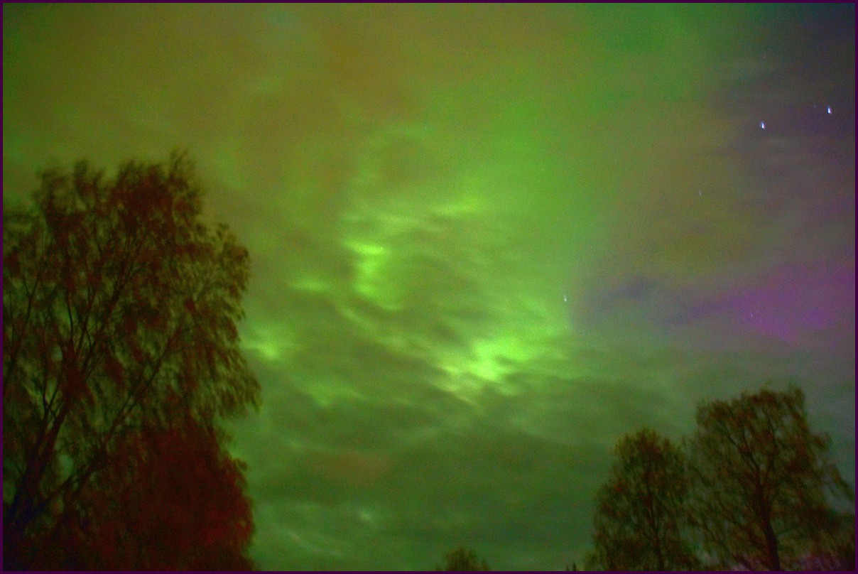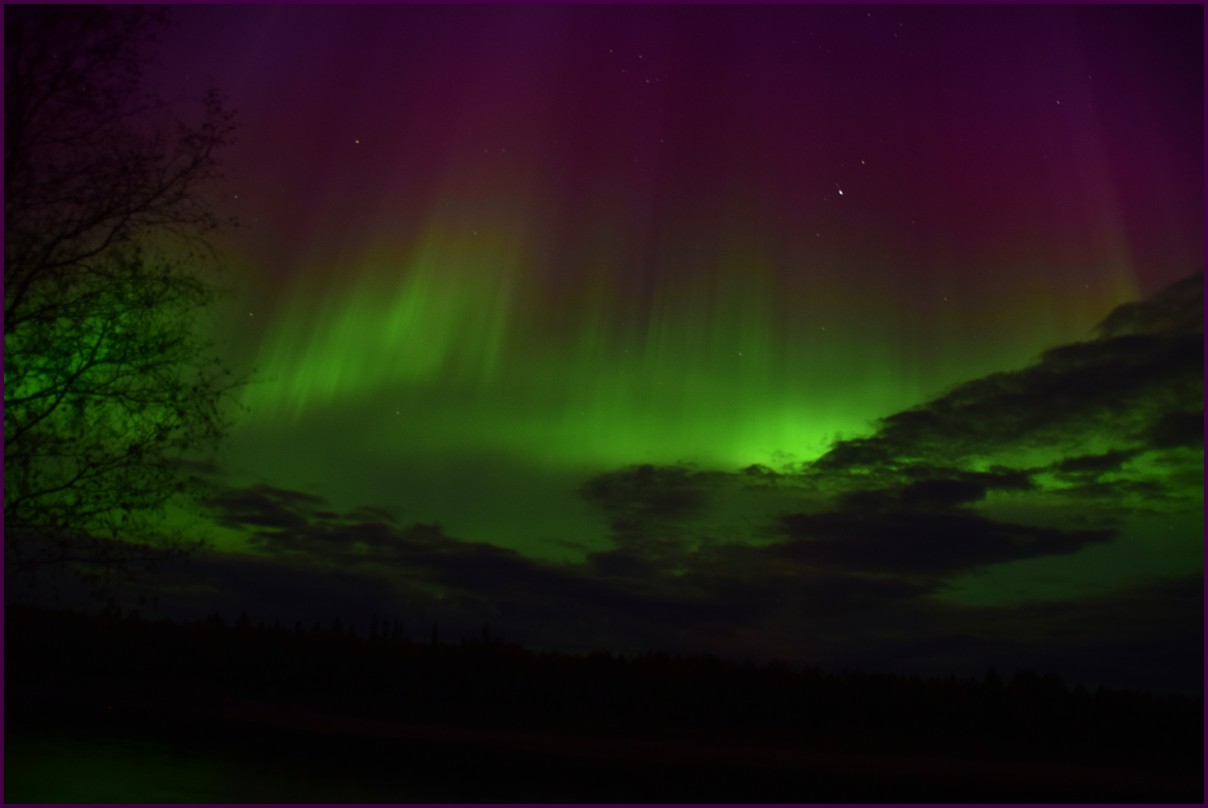 Aujourd'hui repos,lessive nous restons sur place. La soirée est annoncée avec de grosses aurores, mais les nuages et le vent sont là toute la journée. Vers 21h le ciel se dégage et à 22h, les premières lueurs verte apparaissent à l'horizon. D'un seul coup tout s'amplifie le ciel devein vert et rouge ça explose de tout les côtés, le spectacle est fantastique, malheureusement, les nuages reviennent et mettent court au spectacle.