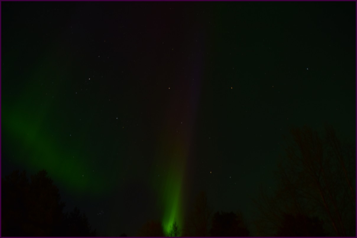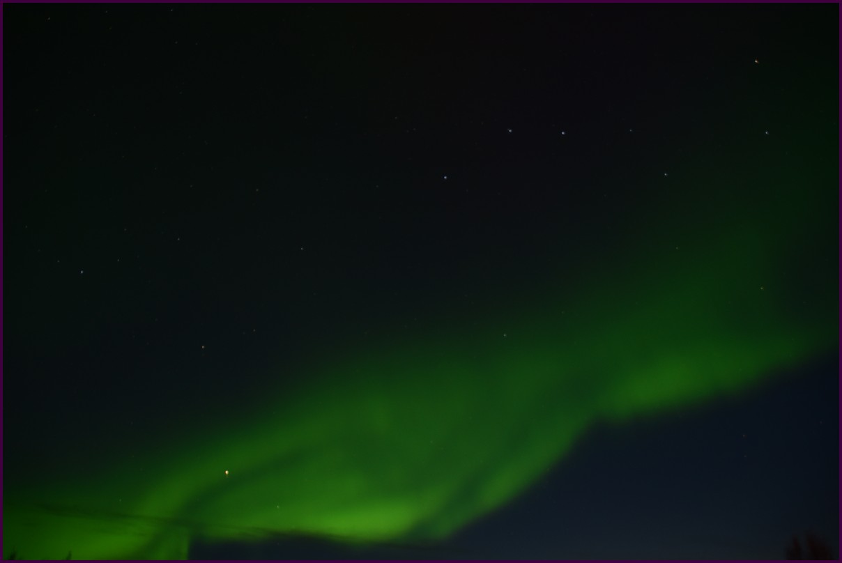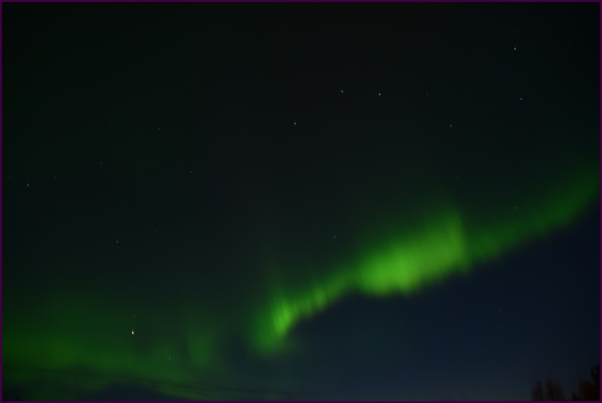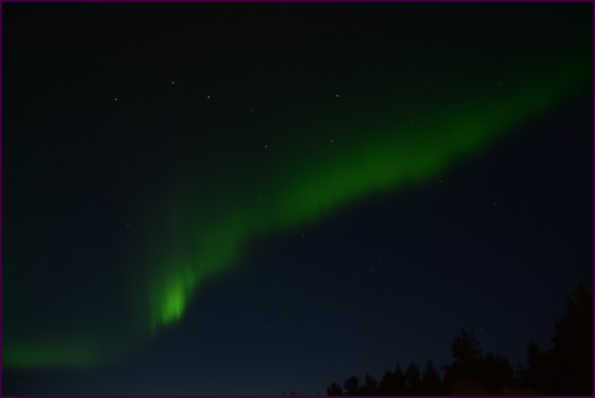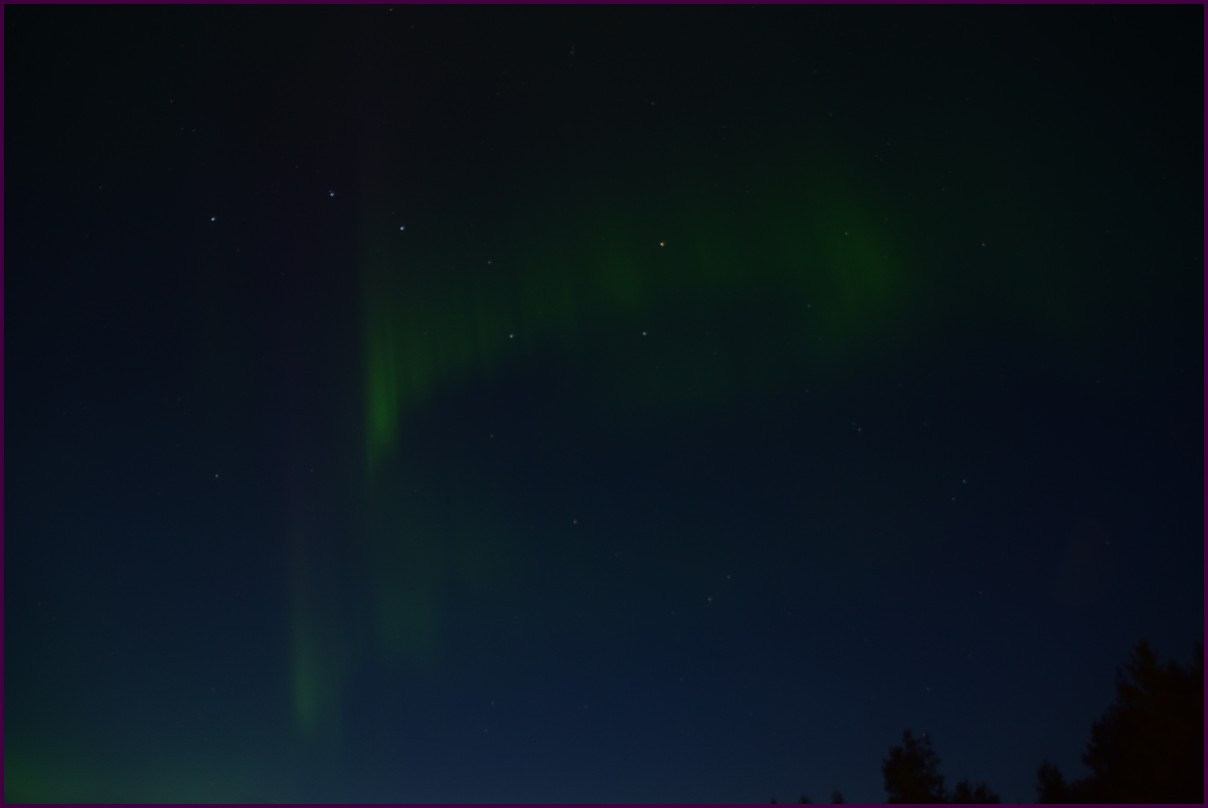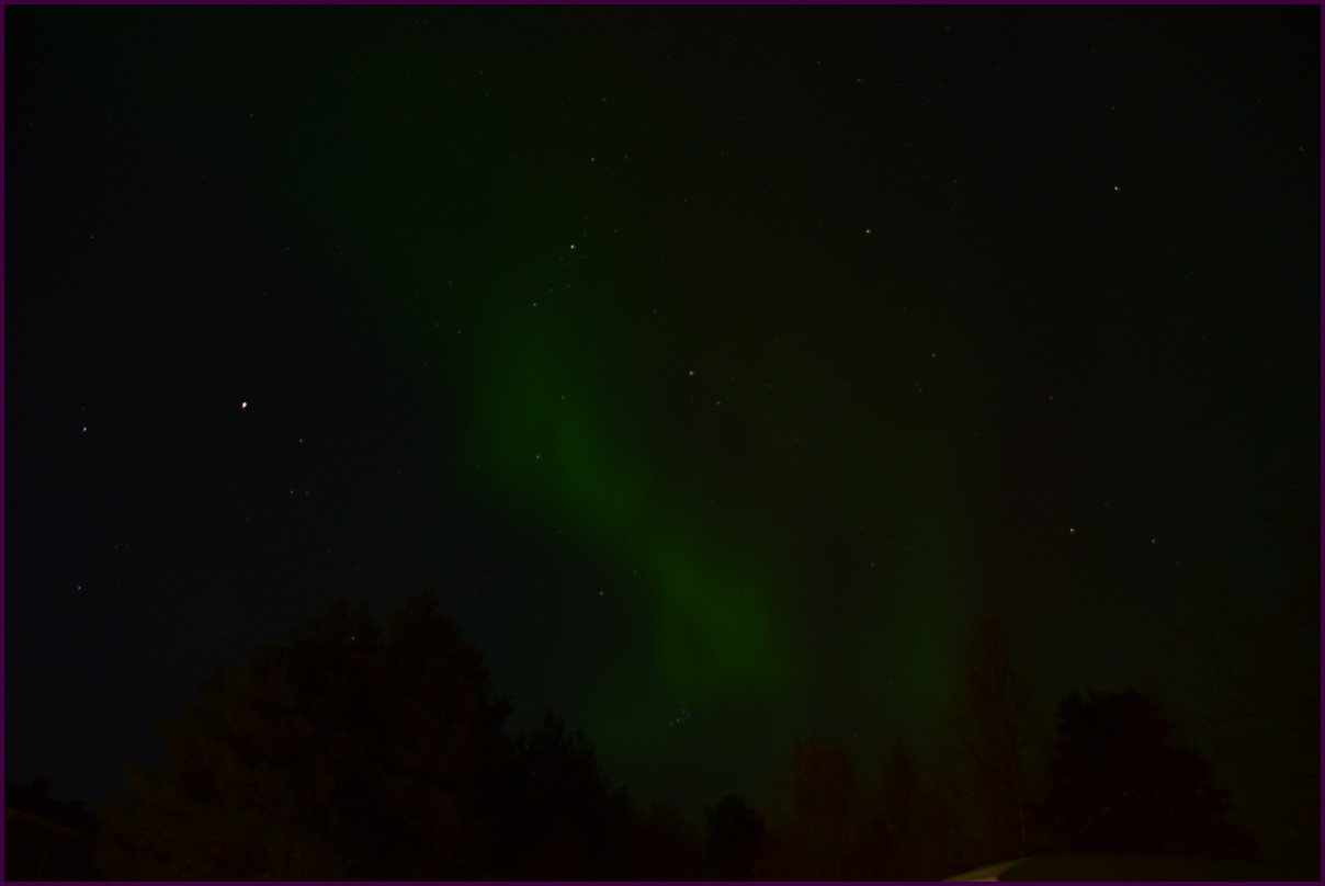 Ce matin il fait 0° autour de nous l'herbe est blanche, nous ne monterons pas plus haut en Finlande, après avoir étudié la météo pour ce soir, nous decidons de redescendres vers le "sud-ouest" de la Finlande un peu au dessus de la frontière avec la Suède. Sur notre route toujours beaucoup de lacs immense, nous rencontrons également des rennes, certains se tiennent tranquillement au milieu de la route. La nuit s'annonce froide alors camping pour l'électricité et le chauffage. Nous avons bien calculé vers 21h30, la danse commence dans le ciel. Les aurores apparaissent de tous les cötés pendant plus d'une heure, malheureusement l'intensité est moyenne mais c'est quand même un spectacle magique. Vers 23h on se réfugie dans le camping-car deors il fait -2° ça commence à serrer.