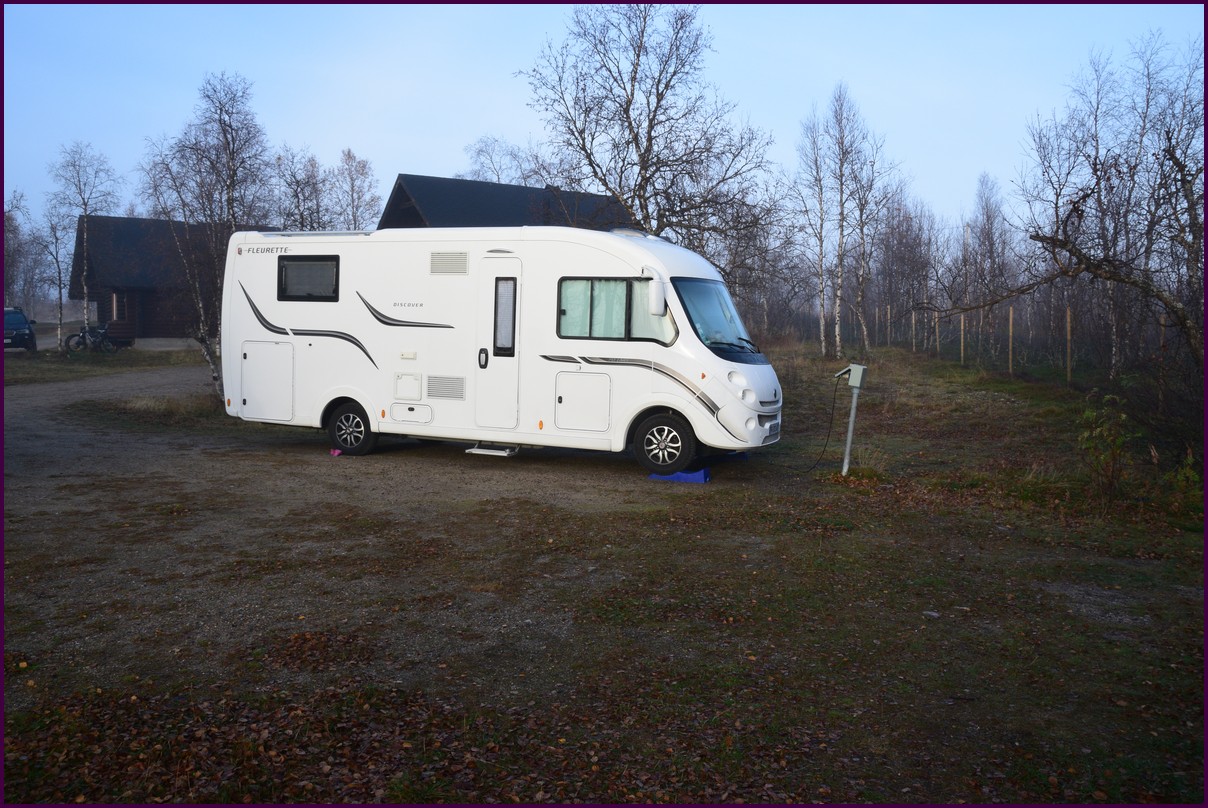 Ce matin, gelée blanche nous avons - 2°, la métèo nous annonce beaucoup de nuages pour la soirée nouss essayons de trouver un endroit qui serait peu être dégagée. Nous parcoourons une quarantaine de km et nous trouvons un camping au bord d'un lac, le ciel est bleu bien dégagée avec de bonne annonce pour les aurores, on se pose là et l'attente commence. Pas de chance vers 20h les nuages arrivent et le ciel se bouche complètement, aucune alerte sur les téléphones, nous partons nous coucher.