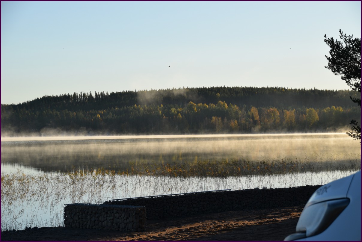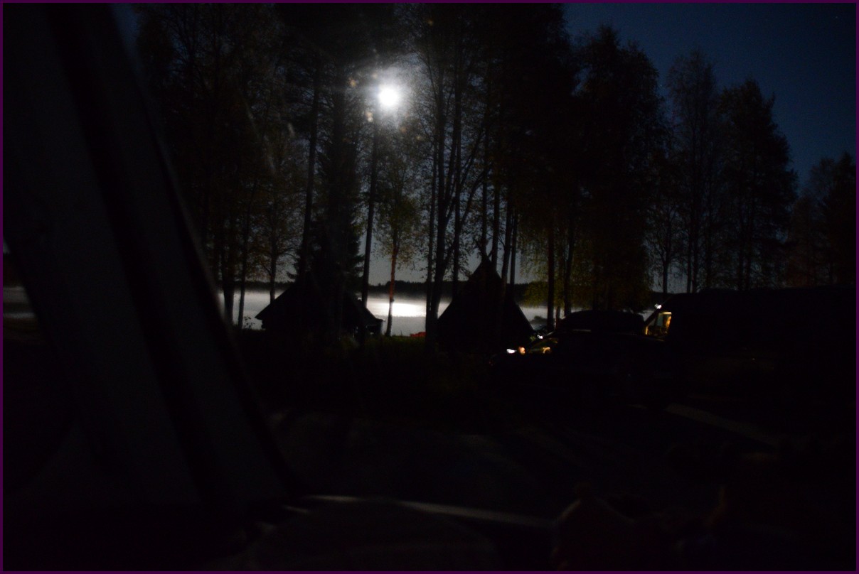 La nuit fut courte mais nous avons eu droit encore au spectacle du ciel. Un point sur la mètèo, en apparence la région de Rovaniemi serait pas trop mal. Nous revoilà parti, re passage par le village du Père Noêl, et nous repartons, nous avons repairé un joli parking au bord d'un lac à quelques km de là. Nous ne sommes pas les seuls, 6 autres camping-car sont déjà là. On se gare, la route n'est pas loin, mais ici la nuit il n'y a pratiquement pas de circulation. Soirèe d'attente, les nuages viennent boucher le ciel, soirèe sans rien dans le ciel, direction le lit.