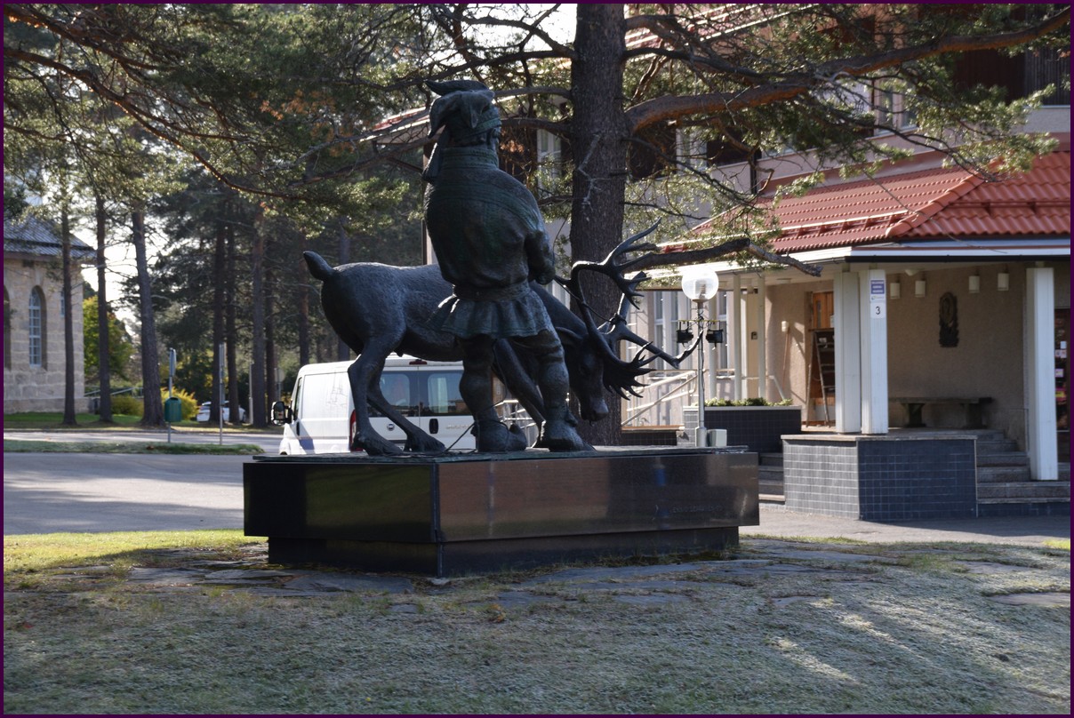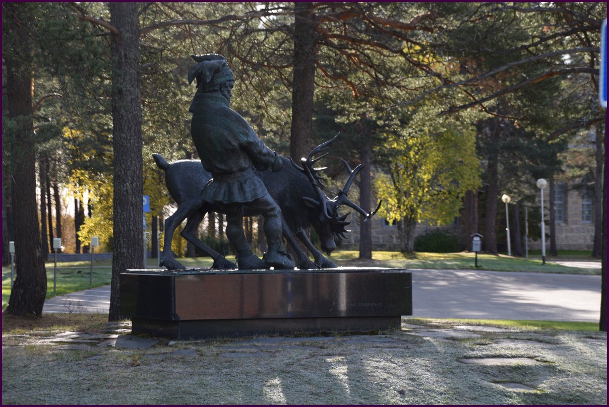 Journée repos,un beau soleil nous accompagne, vérification des niveaux sur le camping-car. Petite ballade dans Sodalinka, jusu'à son église en bois avec une belle statue à la gloire des éleveurs de rennes,quelques courses au supermarché, et attente du soir, mais peu d'espoir le niveau des aurores est très faible ce soir, et rien n'apparait à l'horizon.