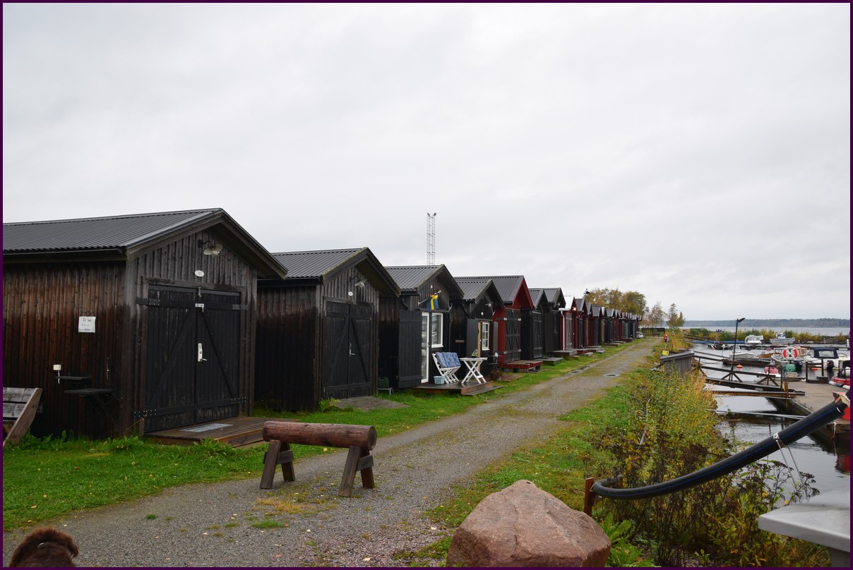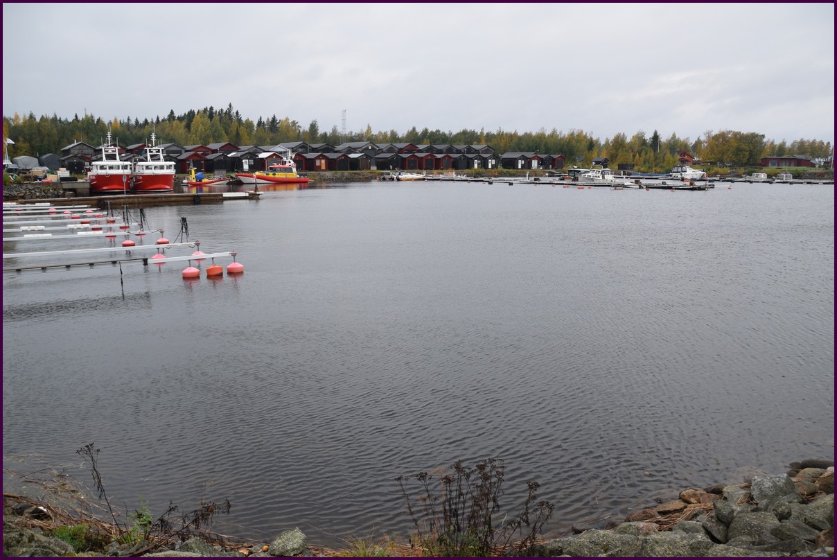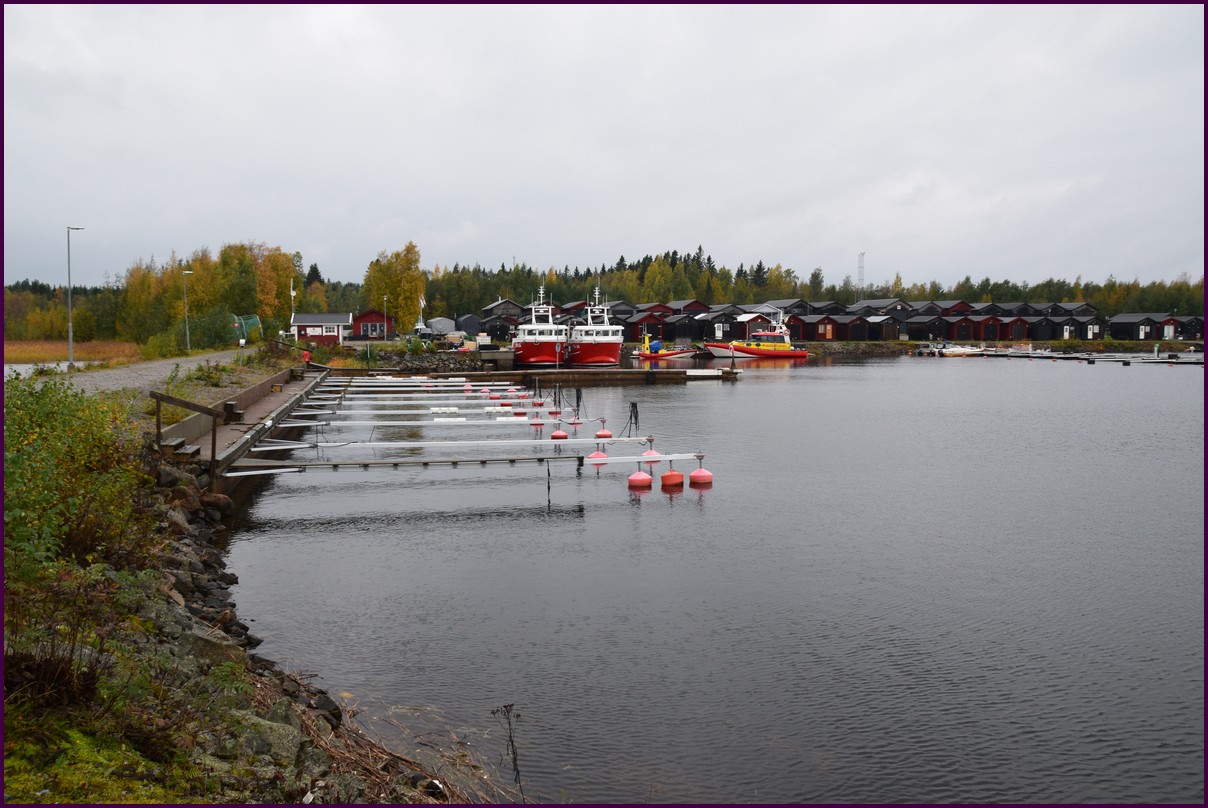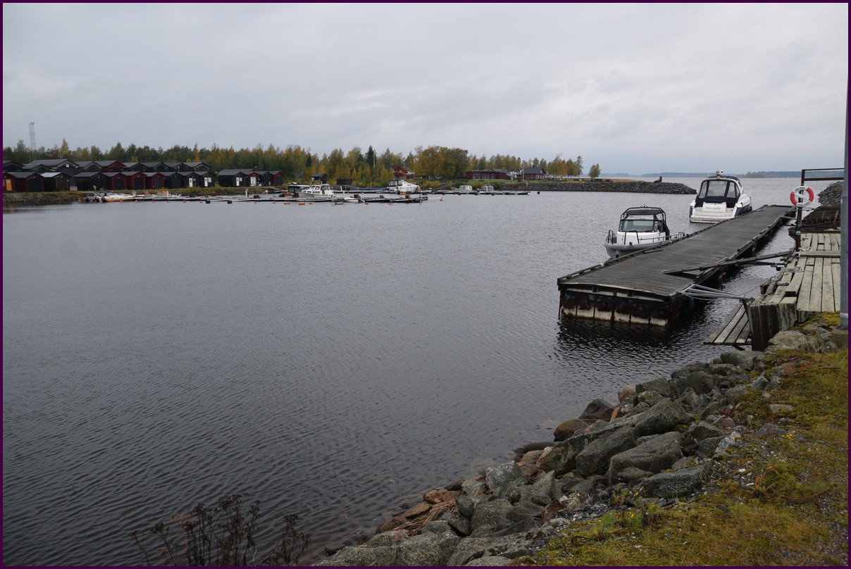 Ce matin la métèo est toujours aussi mauvaise, nous décidons de changer de place en espèrant un peu de ciel bleu. Peine perdu c'est encore une journéee pourrie limite tempête, nous nous réfugions dans une marina au bord du golfe de Botnie, c'est jolie comme tout avec plein de petite cabane alignée au bord de l'eau, se sont des petites résidences à une pièce très bien amménagées pour certaines, et de l'autre coté de grand hangar, dans lesquels sont stationnés de beau bateau de plaisance. Sur tous les batiment sont accrochées des pelles à neige et même sur certains des skis. La nuit tombe vite nous nous réfugions au chaud dans le camping-car.