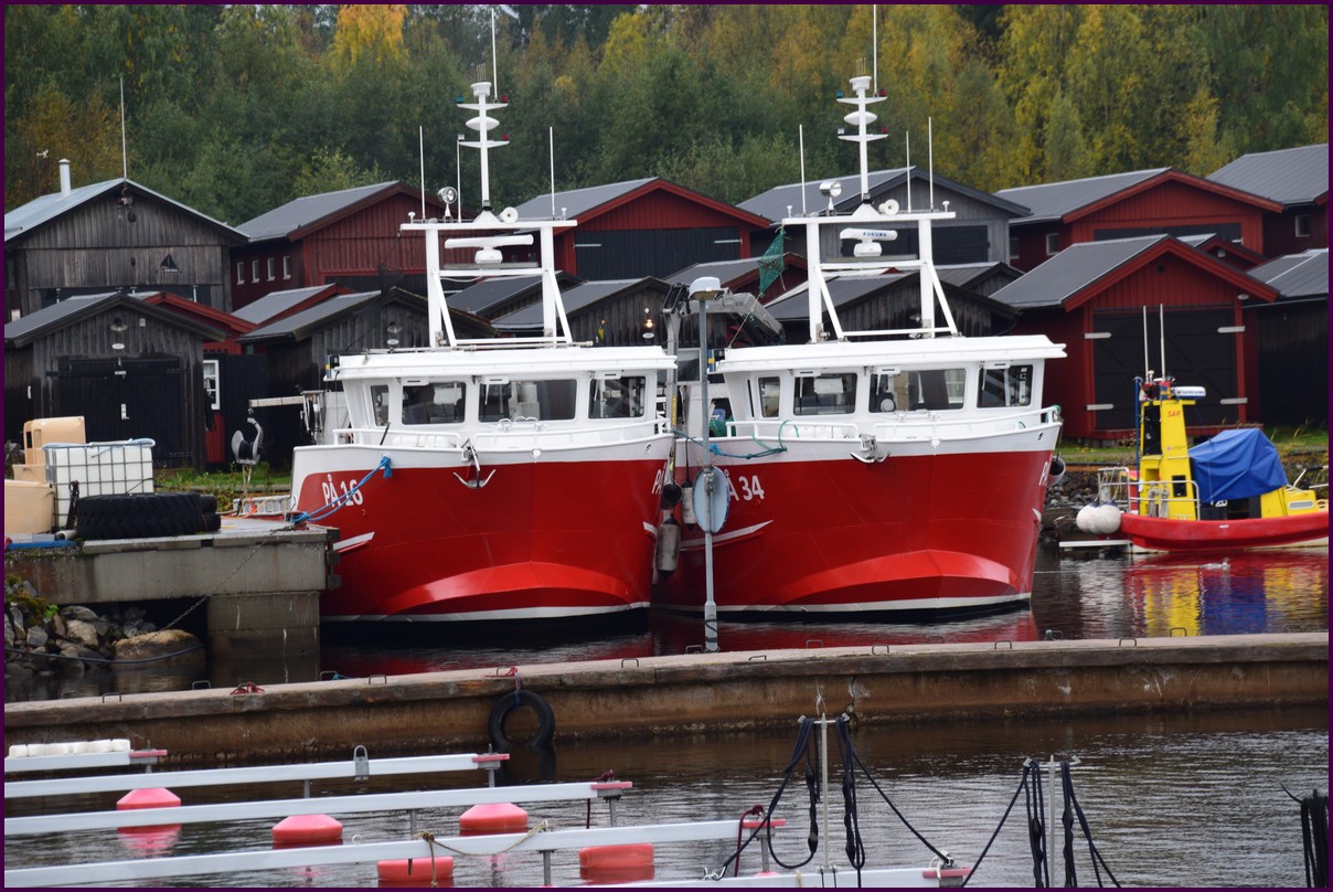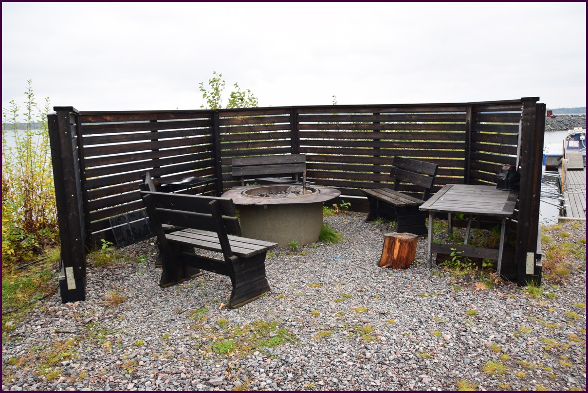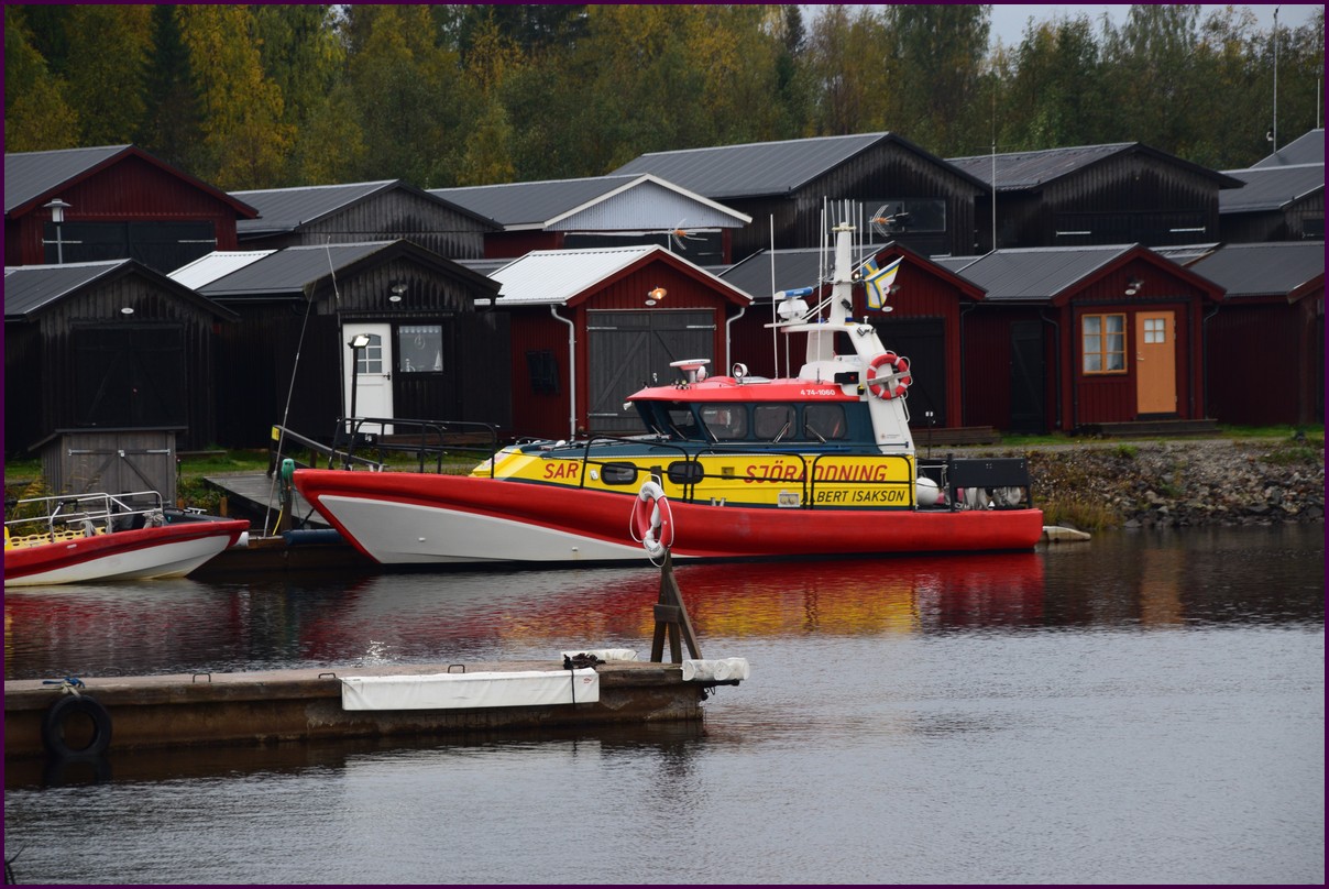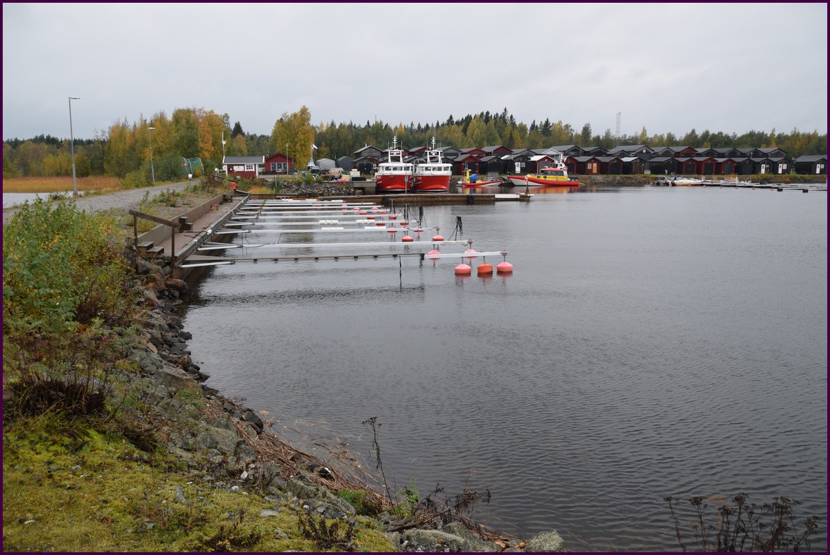 Ce matin la métèo est toujours aussi mauvaise, nous décidons de changer de place en espèrant un peu de ciel bleu. Peine perdu c'est encore une journéee pourrie limite tempête, nous nous réfugions dans une marina au bord du golfe de Botnie, c'est jolie comme tout avec plein de petite cabane alignée au bord de l'eau, se sont des petites résidences à une pièce très bien amménagées pour certaines, et de l'autre coté de grand hangar, dans lesquels sont stationnés de beau bateau de plaisance. Sur tous les batiment sont accrochées des pelles à neige et même sur certains des skis. La nuit tombe vite nous nous réfugions au chaud dans le camping-car.