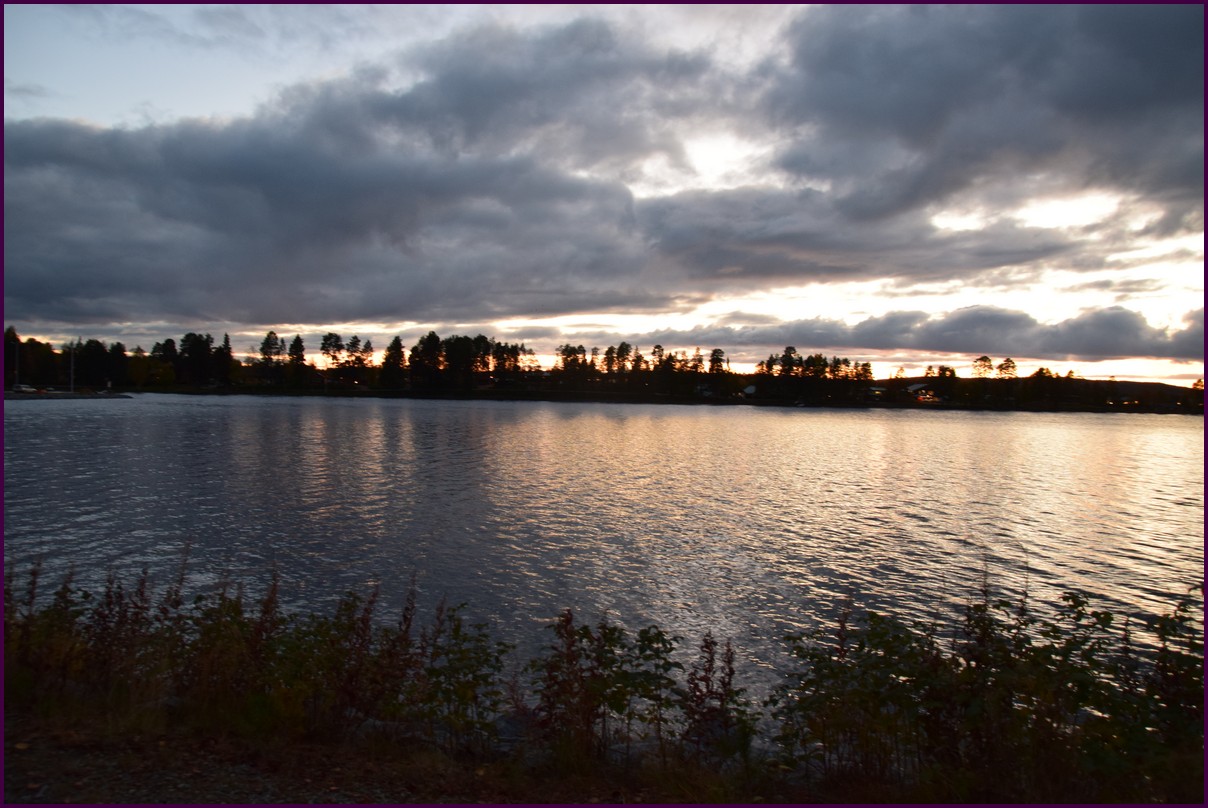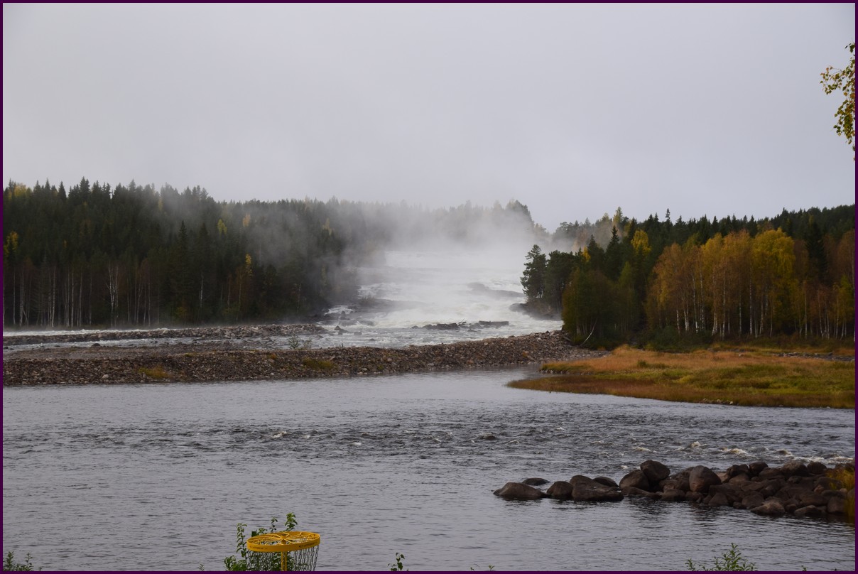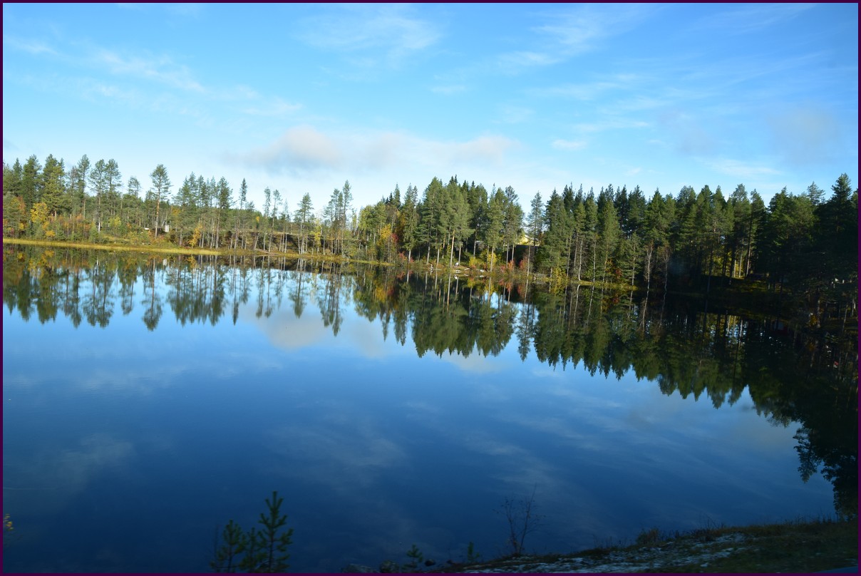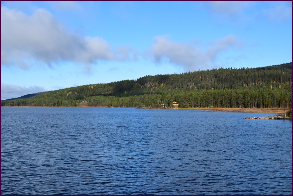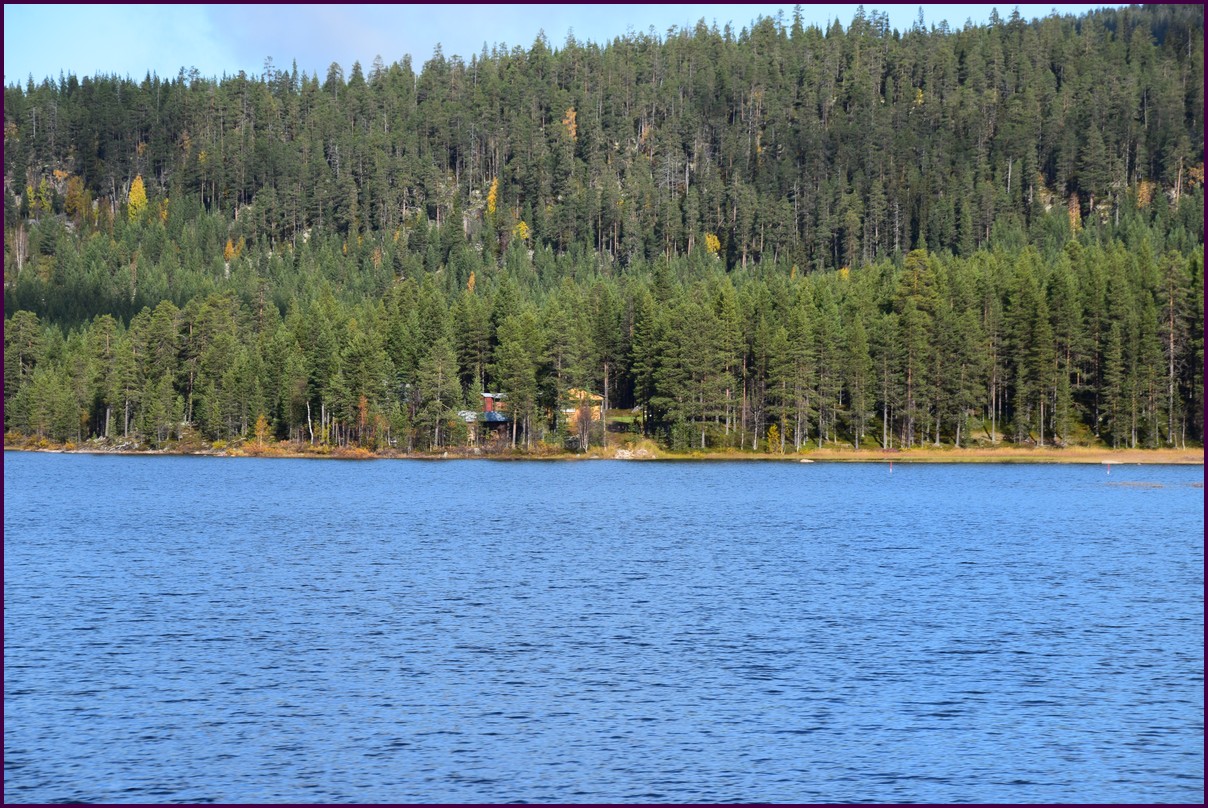 Toujours pas d'aurores cette nuit,nous décidons de prendre la route du retour par petites étapes. Ce matin,il fait 1° et il y a un épais brouillard. Nous reprenons la route au milieu des forêts de sapin à perte de vue, la circulation est pratiquement nulle nous croisons une voiture tous les 10 km en moyenne, on peu rouler tranquille. Le brouillard fini par se lever pour laisser place à un beau soleil, mais la tempèrature ne dépasse pas le 7°. Nous décidons de nous arrêter après 250 km on est pas pressé et nous caressons toujours l'espoir que les aurores viendront nous saluer.