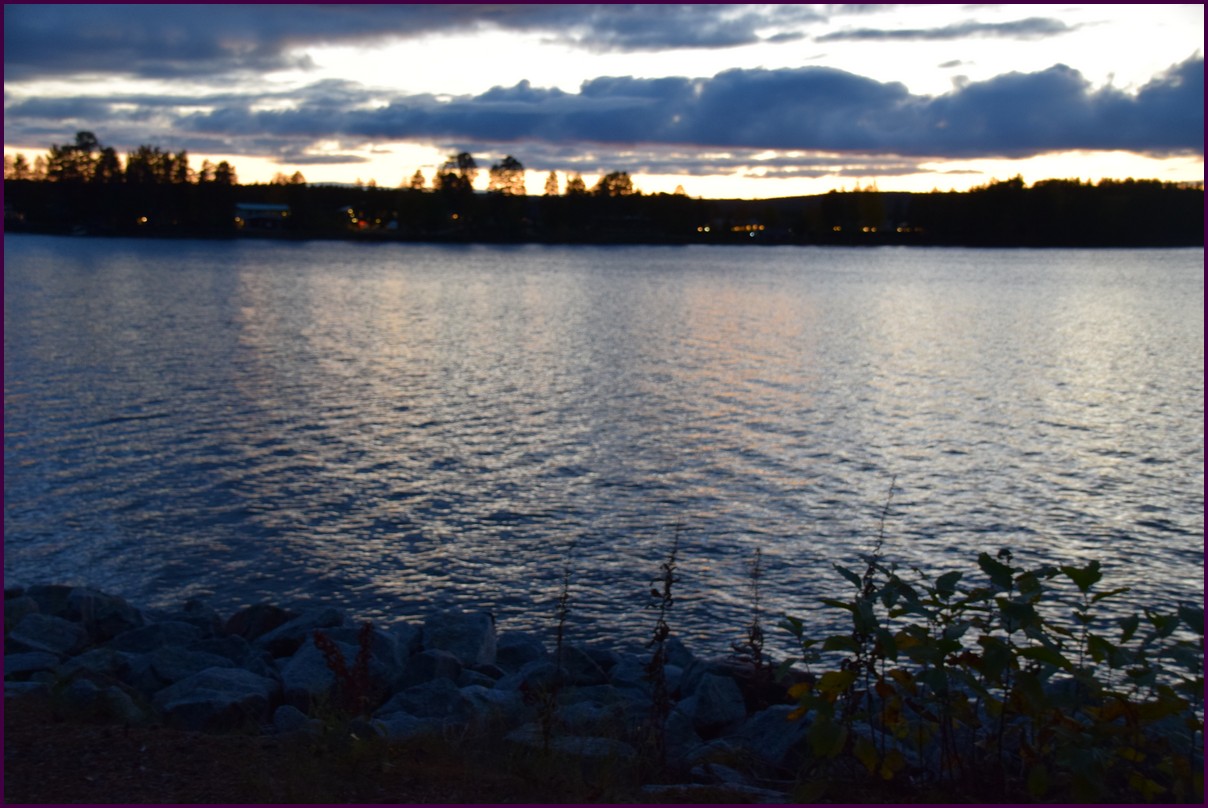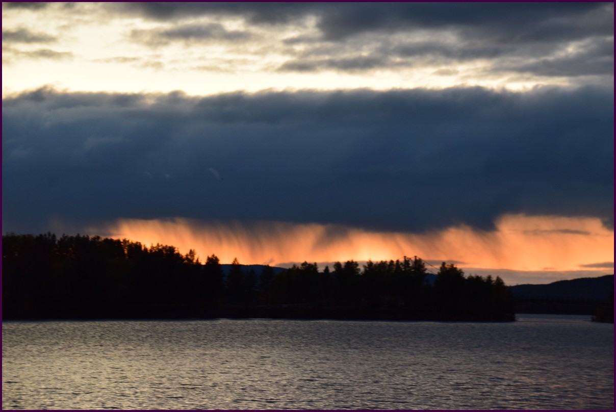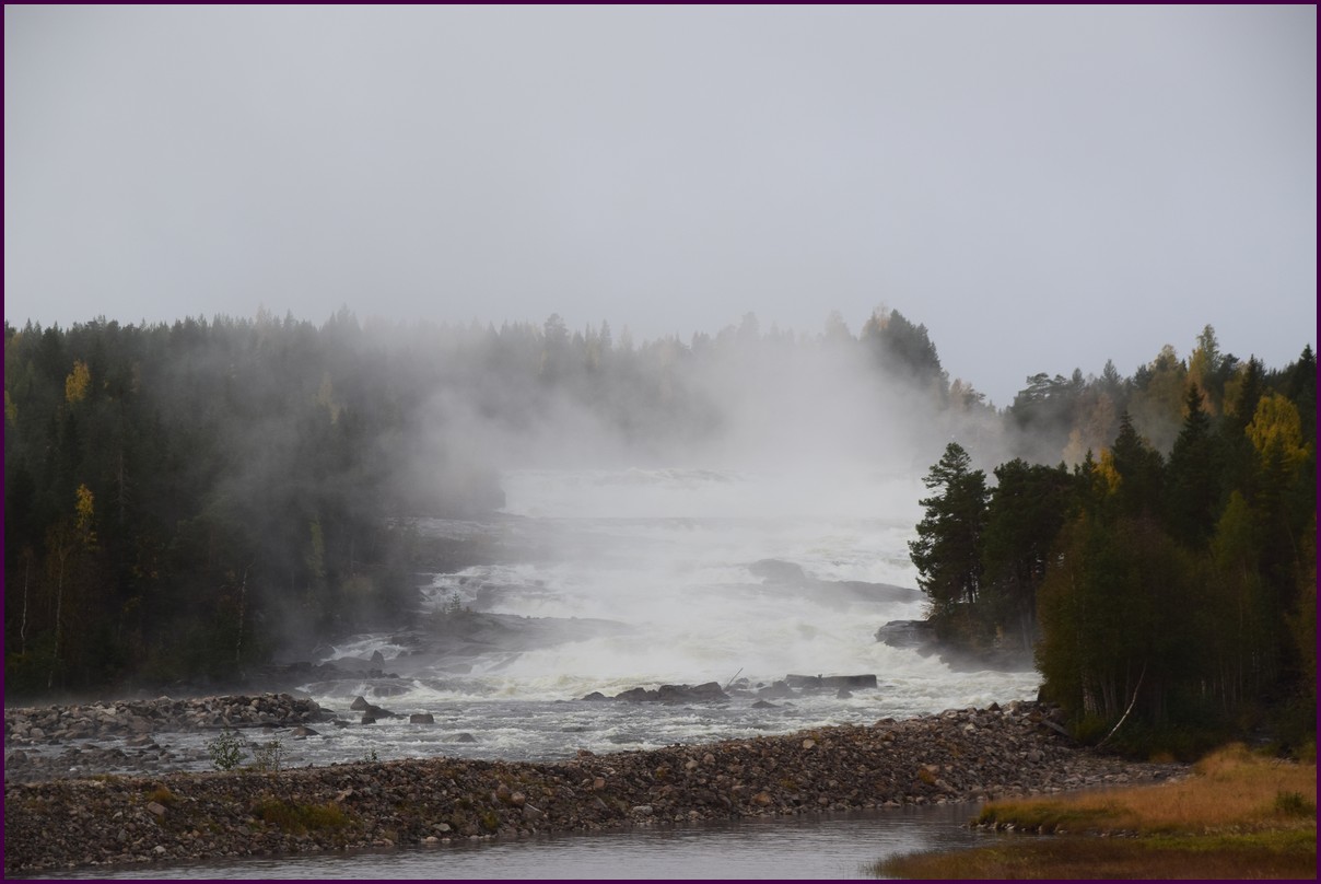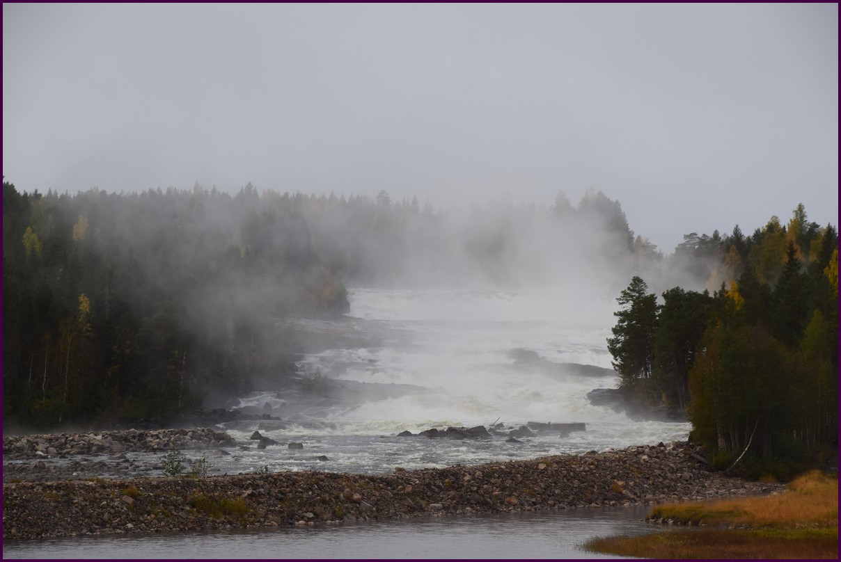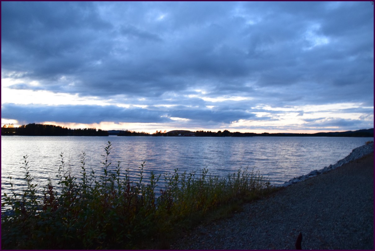 Toujours pas d'aurores cette nuit,nous décidons de prendre la route du retour par petites étapes. Ce matin,il fait 1° et il y a un épais brouillard. Nous reprenons la route au milieu des forêts de sapin à perte de vue, la circulation est pratiquement nulle nous croisons une voiture tous les 10 km en moyenne, on peu rouler tranquille. Le brouillard fini par se lever pour laisser place à un beau soleil, mais la tempèrature ne dépasse pas le 7°. Nous décidons de nous arrêter après 250 km on est pas pressé et nous caressons toujours l'espoir que les aurores viendront nous saluer.