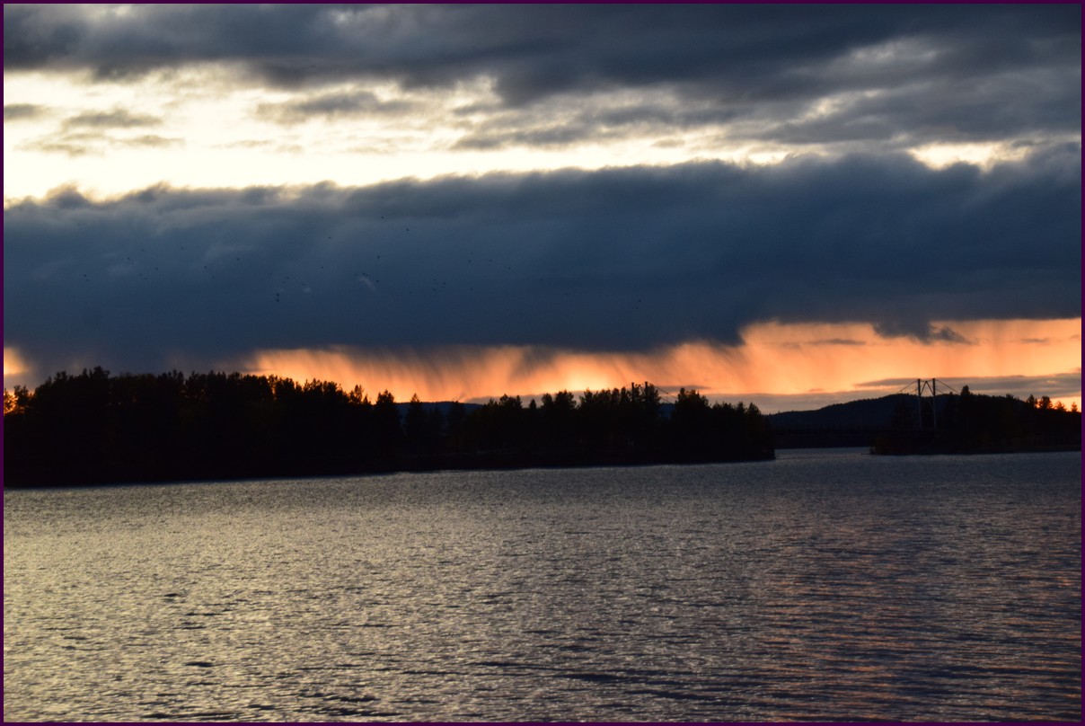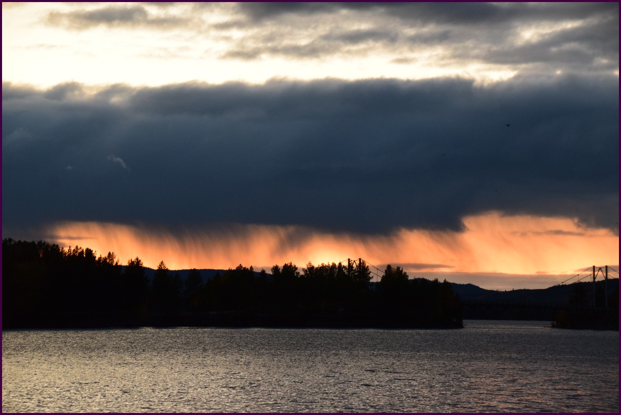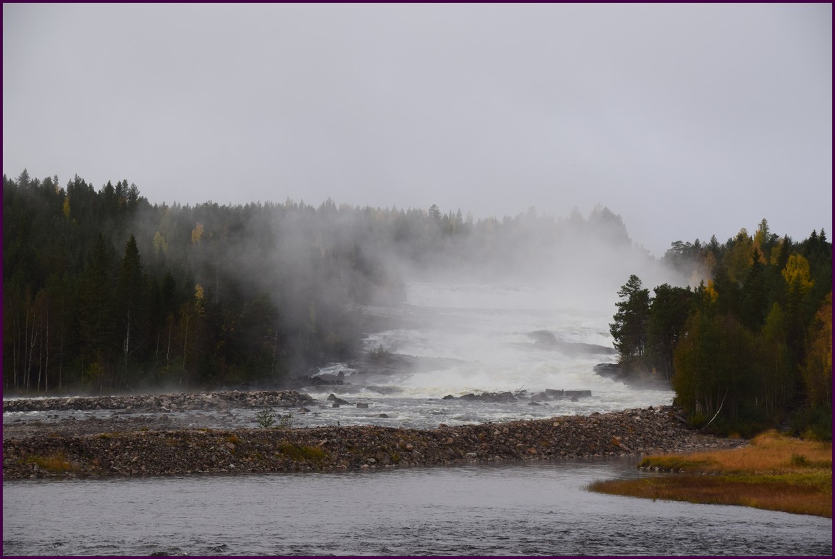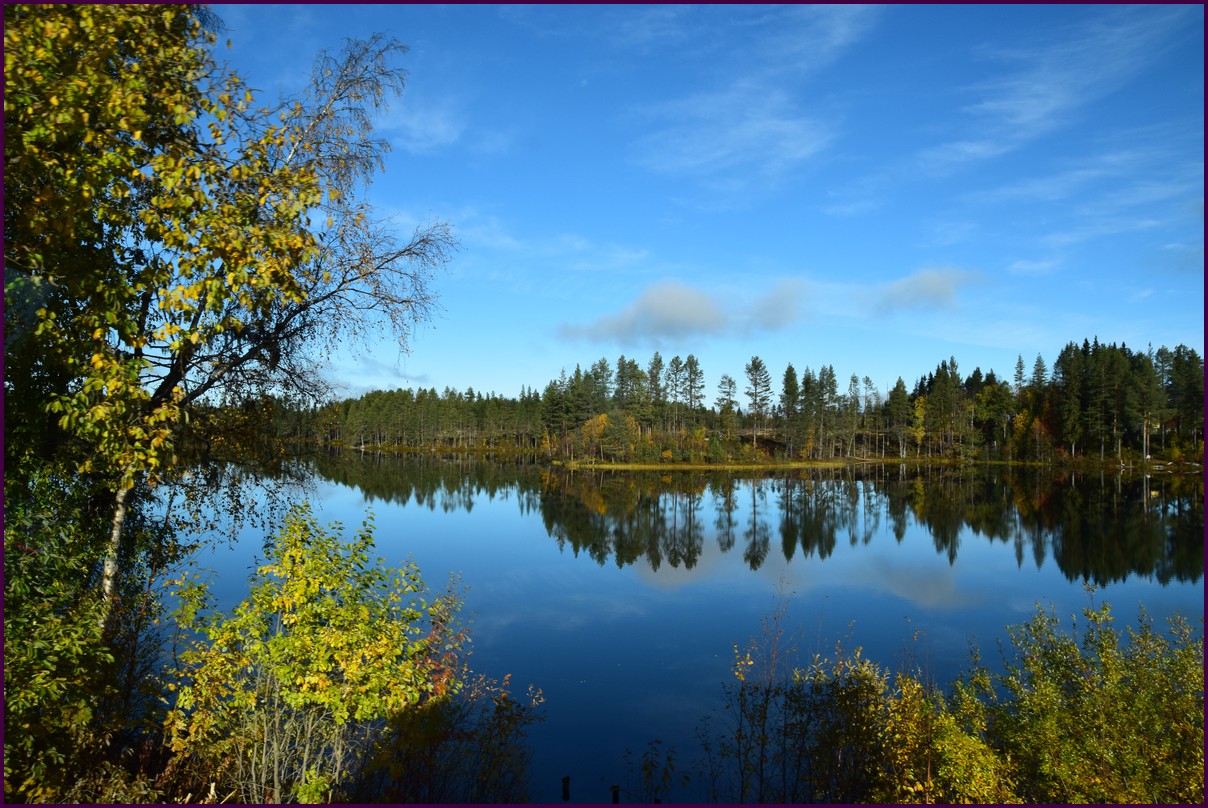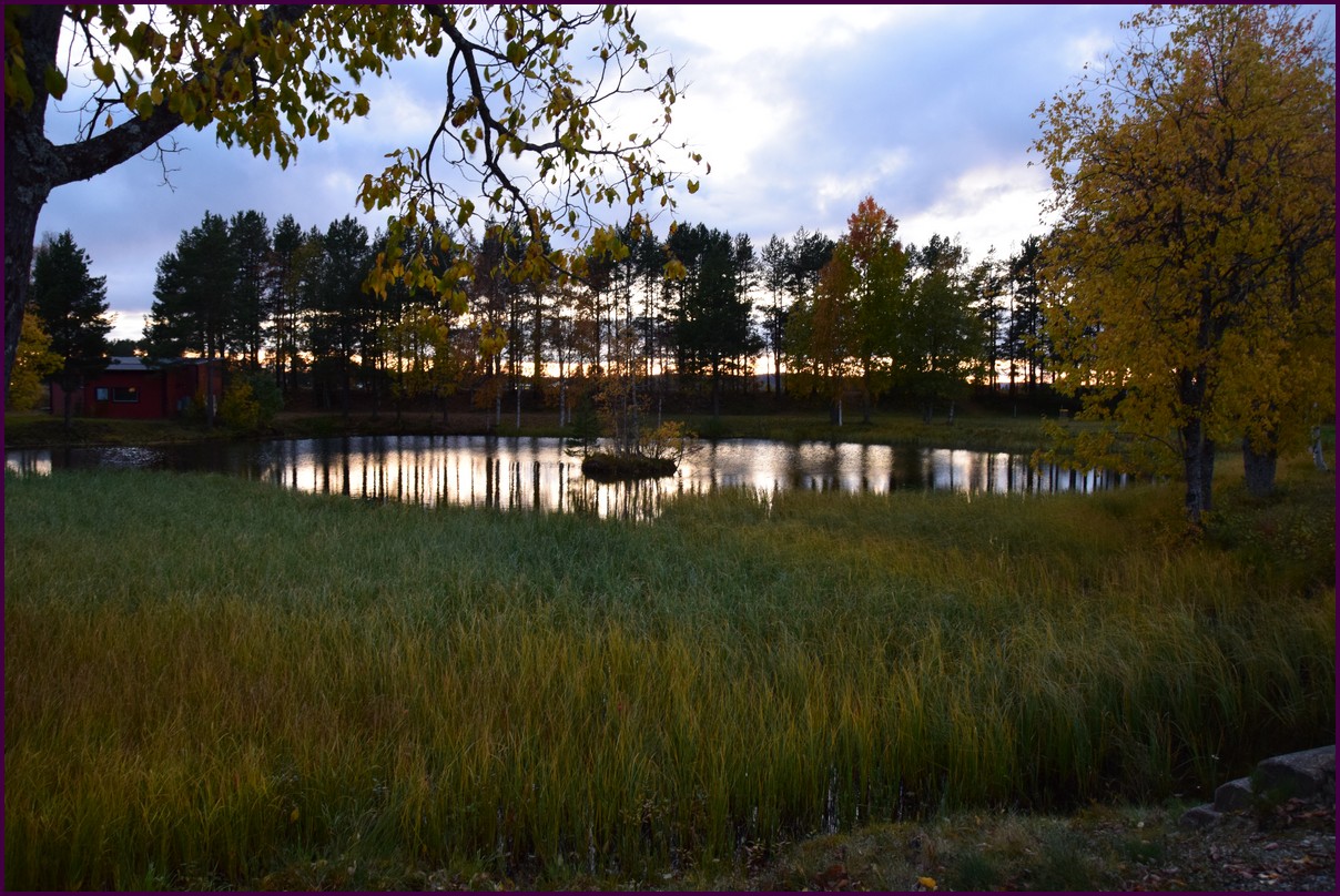 Toujours pas d'aurores cette nuit,nous décidons de prendre la route du retour par petites étapes. Ce matin,il fait 1° et il y a un épais brouillard. Nous reprenons la route au milieu des forêts de sapin à perte de vue, la circulation est pratiquement nulle nous croisons une voiture tous les 10 km en moyenne, on peu rouler tranquille. Le brouillard fini par se lever pour laisser place à un beau soleil, mais la tempèrature ne dépasse pas le 7°. Nous décidons de nous arrêter après 250 km on est pas pressé et nous caressons toujours l'espoir que les aurores viendront nous saluer.